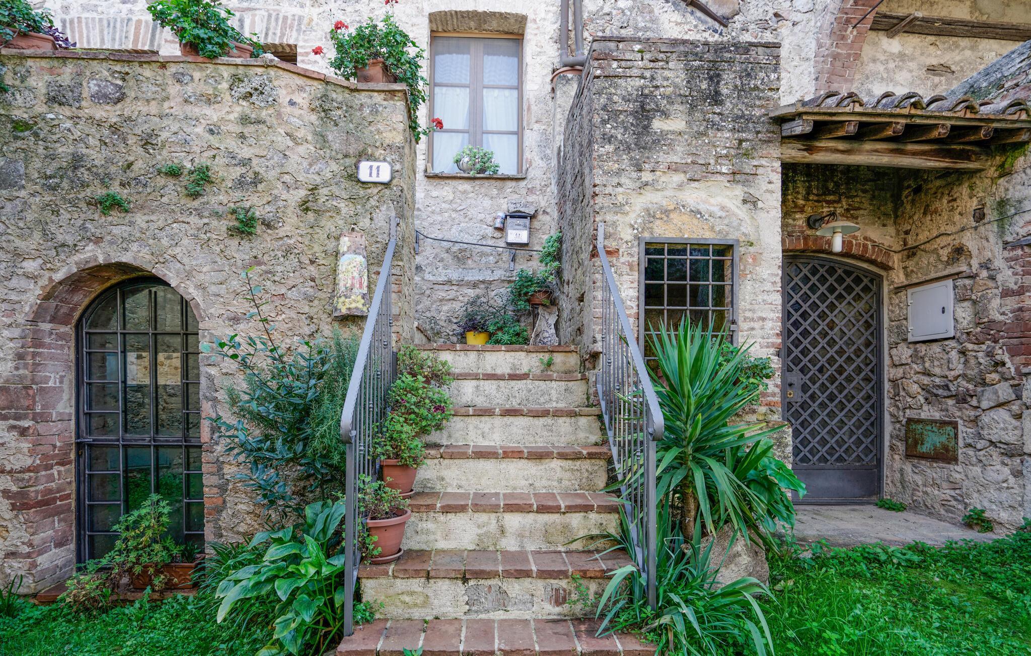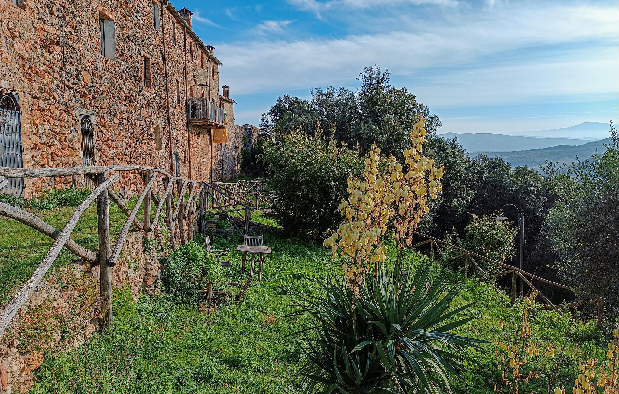 Der Außenbereich lädt mit malerischen Steinterrassen und einem charmanten Garten zum Verweilen ein. Starten Sie Ihren Tag mit einem Frühstück im Freien und genießen Sie dabei den Blick auf die historische Architektur. Nutzen Sie die Gelegenheit, ein Glas Wein im Schatten der Pflanzen zu genießen oder spazieren Sie durch die idyllischen Gassen des Dorfes.