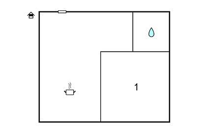 Badezimmer (nr. 1) - WC. Warmes und kaltes Wasser. Dusche