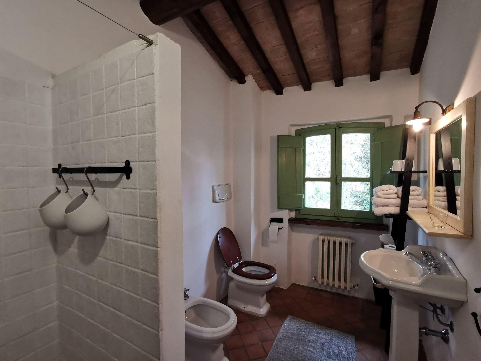 Das grosszügige Apartment besticht durch seine Lage im 1. Stock des alten, top-renovierten Bauernhauses mit herrlichem Blick über die umbrische Landschaft und das benachbarte Dorf Montone.