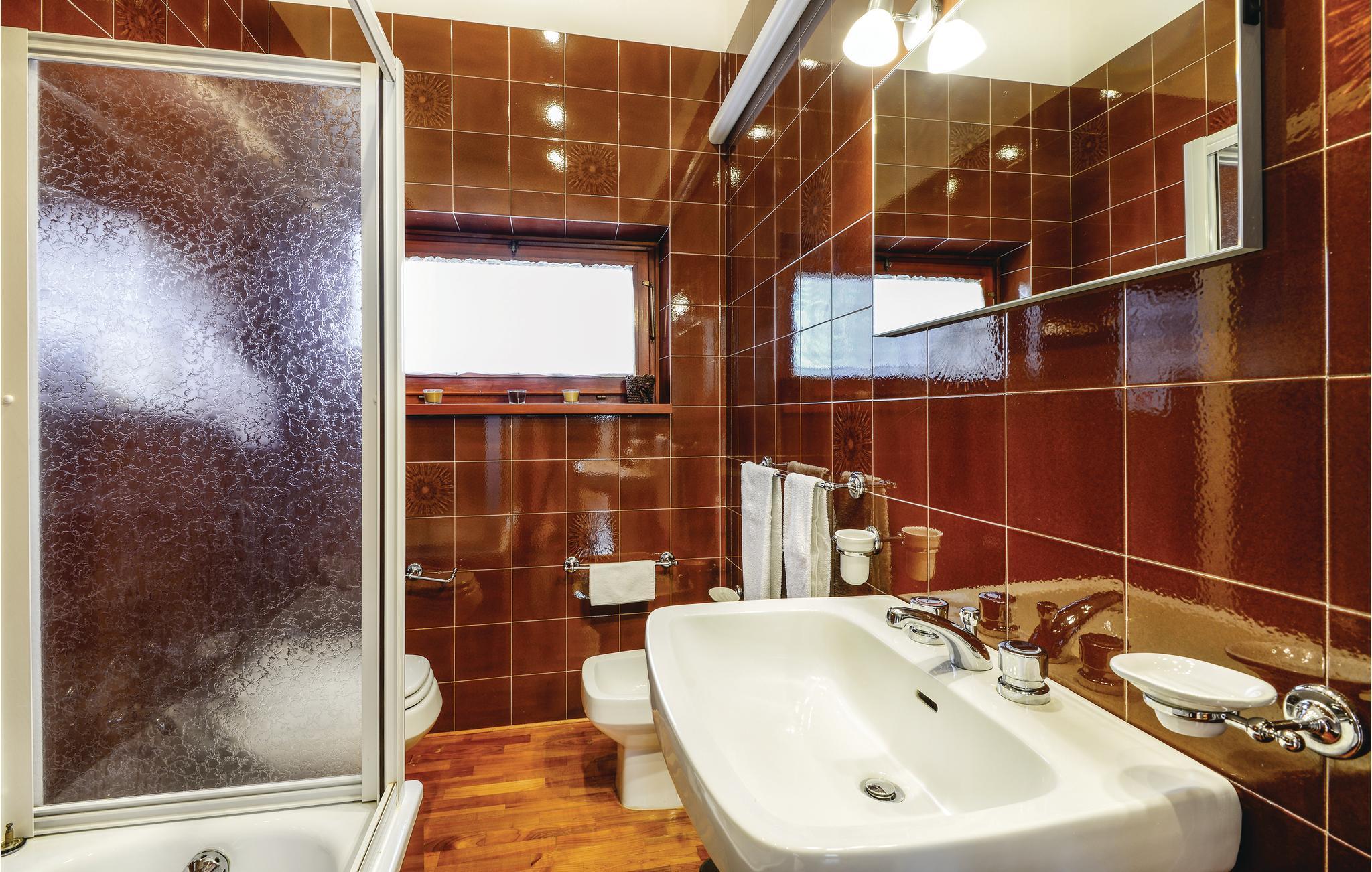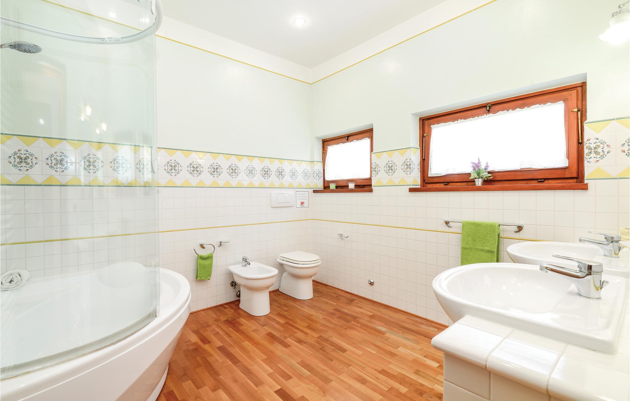 Badezimmer (nr. 2) - WC. Warmes und kaltes Wasser. Dusche und Badewanne