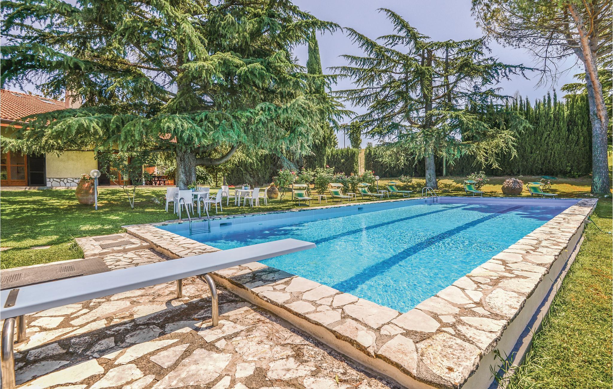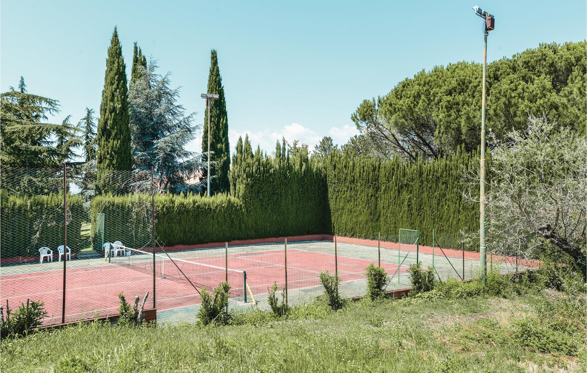Hier bewohnen Sie eine Haushälfte eines Zweifamilienhauses in schöner Panoramalage, etwa 1 km von Montopoli di Sabina und nur 50 km von Rom entfernt. Das stilvolle Feriendomizil ist von viel Grün umgeben und bietet Blick auf das umliegende Tal. Neben einer schönen Grünfläche verfügen die Gäste über einen einladenden Pool und einen Tennisplatz, die man sich nur mit den Eigentümern teilt, die in der anderen Haushälfte wohnen. Die Ferienunterkunft ist ideal für einen erholsamen Urlaub und guter Ausgangspunkt, um den nördlichen Teil der Region Latium sowie die Orte Rieti (45 km), Terni (70 km) oder den Bracciano-See (70 km) zu besichtigen.