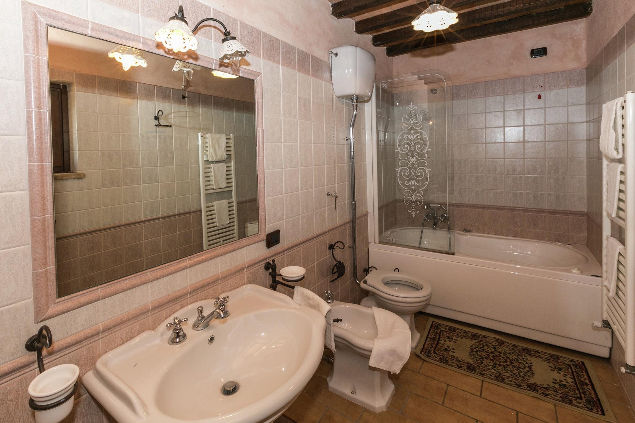 Entfliehen Sie in die ruhige Landschaft von Montoro. Dieses haustierfreundliche Bauernhaus bietet Platz für bis zu fünf Gäste und bietet eine charmante Mischung aus Komfort und Natur. Umgeben von sanften Hügeln bietet dieses Refugium einen über 1.000 Quadratmeter großen Gemeinschaftsgarten, eine geräumige Terrasse und Zugang zu einem Gemeinschaftspool (14 x 7 Meter, geöffnet von Juni bis September). Ob Sie am Kamin entspannen oder die frische Luft im Freien genießen – dieses Bauernhaus ist wie geschaffen für Entspannung. Im ersten Stock befindet sich ein gemütliches Wohnzimmer mit Fernseher, Esstisch, Kamin und Sitzecke sowie eine voll ausgestattete offene Küche mit Herd, Dunstabzugshaube, Backofen, Mikrowelle, Geschirrspüler und Kühl-Gefrierkombination. Das Haus verfügt über zwei Schlafzimmer, eines mit Etagenbett und eines mit Doppelbett, sowie ein Zwischengeschoss mit Einzelbett. Das Badezimmer ist mit Badewanne mit Dusche, Whirlpool, Waschbecken, WC und Bidet ausgestattet. Für Komfort und Bequemlichkeit stehen Ihnen eine gemeinschaftlich genutzte Waschmaschine, Gartenmöbel, Sonnenliegen, ein Grillplatz und ein Sonnenschirm zur Verfügung. Das nahe gelegene Schloss Montoro bietet atemberaubende Ausblicke und Einblicke in die mittelalterliche Geschichte, während die Plaza España ein pulsierendes Zentrum inmitten historischer Gebäude ist. Zum Essen gibt es die Cafetería Pizzería Donde Siempre, die köstliche Pizza serviert, das Restaurante Casa Bar Yépez bietet mediterrane Aromen und JOHN'S CORNER bietet eine einzigartige mexikanische Note. Ob Sie kulturelles Erbe erkunden oder die Umgebung erkunden möchten, Egal, ob Sie Sehenswürdigkeiten besichtigen oder lokale Gerichte genießen möchten, dieses Bauernhaus ist der perfekte Rückzugsort in Montoro.