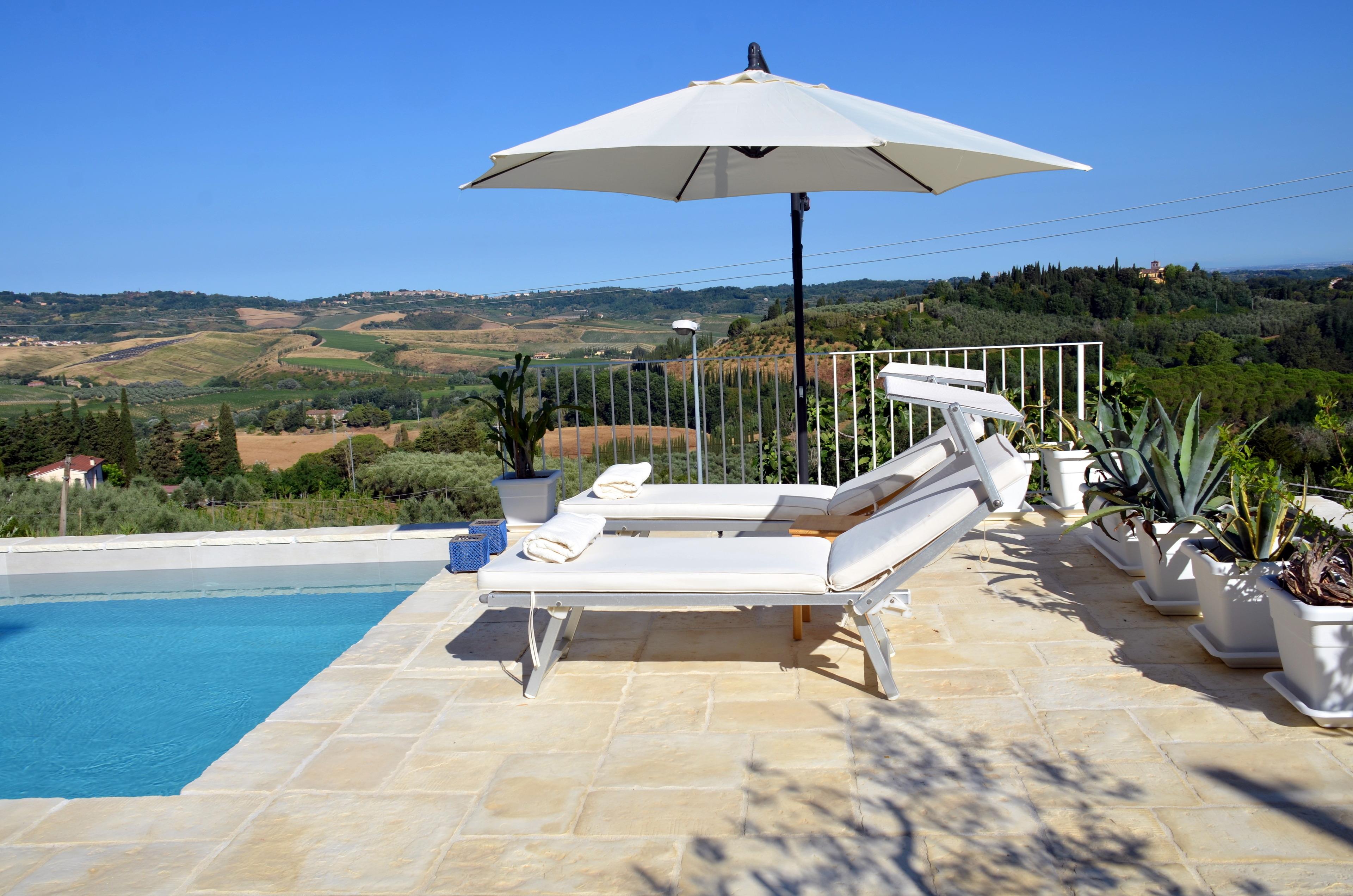 Ausrichtung nach Südwesten des Hauses bietet herrliche Sonnenuntergänge über die Weinberge, die mittelalterliche Kloster von Badia von Morrona, die Hügel von Pisa und die Apuanischen Alpen.