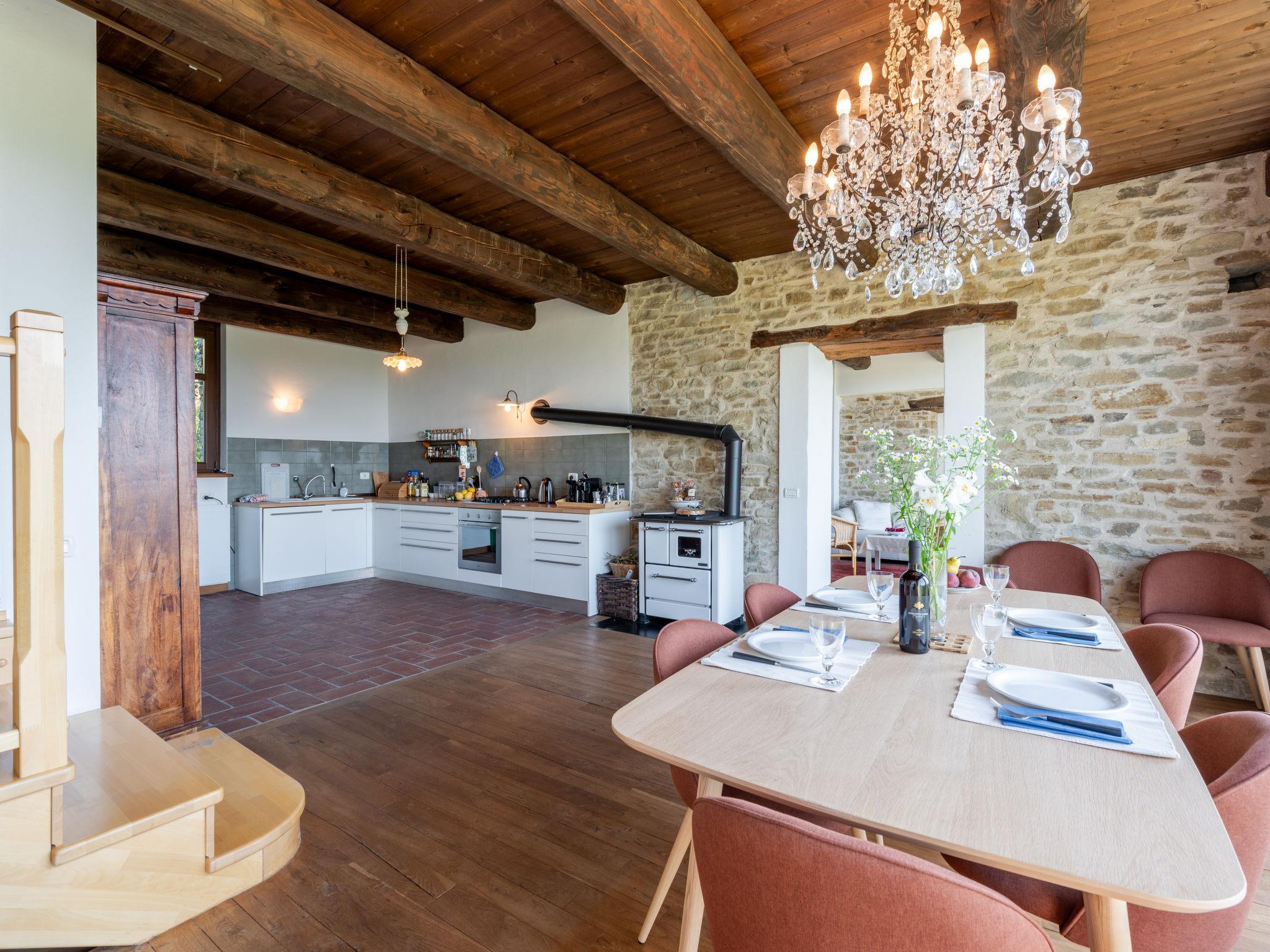 "Purin I", 5-Zimmer-Wohnung 130 m2 auf 2 Stockwerken. Renoviert im Jahre 2025, schön und geschmackvoll eingerichtet: Wohnzimmer mit Panoramafenster mit Schwedenofen. Ausgang zur Terrasse. Esszimmer. 1 Doppelzimmer. Offene Küche (Backofen, Geschirrspüler, Gasherd, 4 Flammen, Toaster, Wasserkocher, elektrische Kaffeemaschine) mit Holzofen. Dusche/WC. Obergeschoss: Wohnzimmer mit Panoramafenster. Ausgang zur Terrasse. 1 Doppelzimmer mit Dusche/WC. Heizung. Heizung nur verfügbar von 01.10. bis 15.04. Holzdielenboden, Natursteinboden. Terrasse 10 m2, Terrasse 15 m2. Terrassenmöbel. Schöne Panoramasicht auf die Berge und die Landschaft. Zur Verfügung: Waschmaschine, Wäschetrockner. Internet (WLAN, gratis). Bitte beachten: Maximal 1 Haustier/Hund erlaubt. Eigener Eingang, Rauchmelder, Feuerlöscher. IT004145C26N3WQPPT