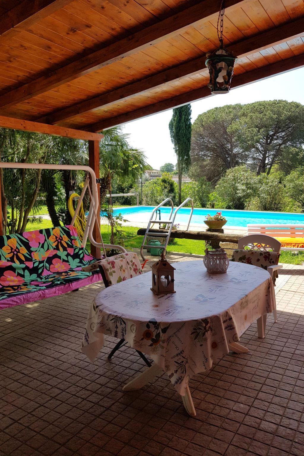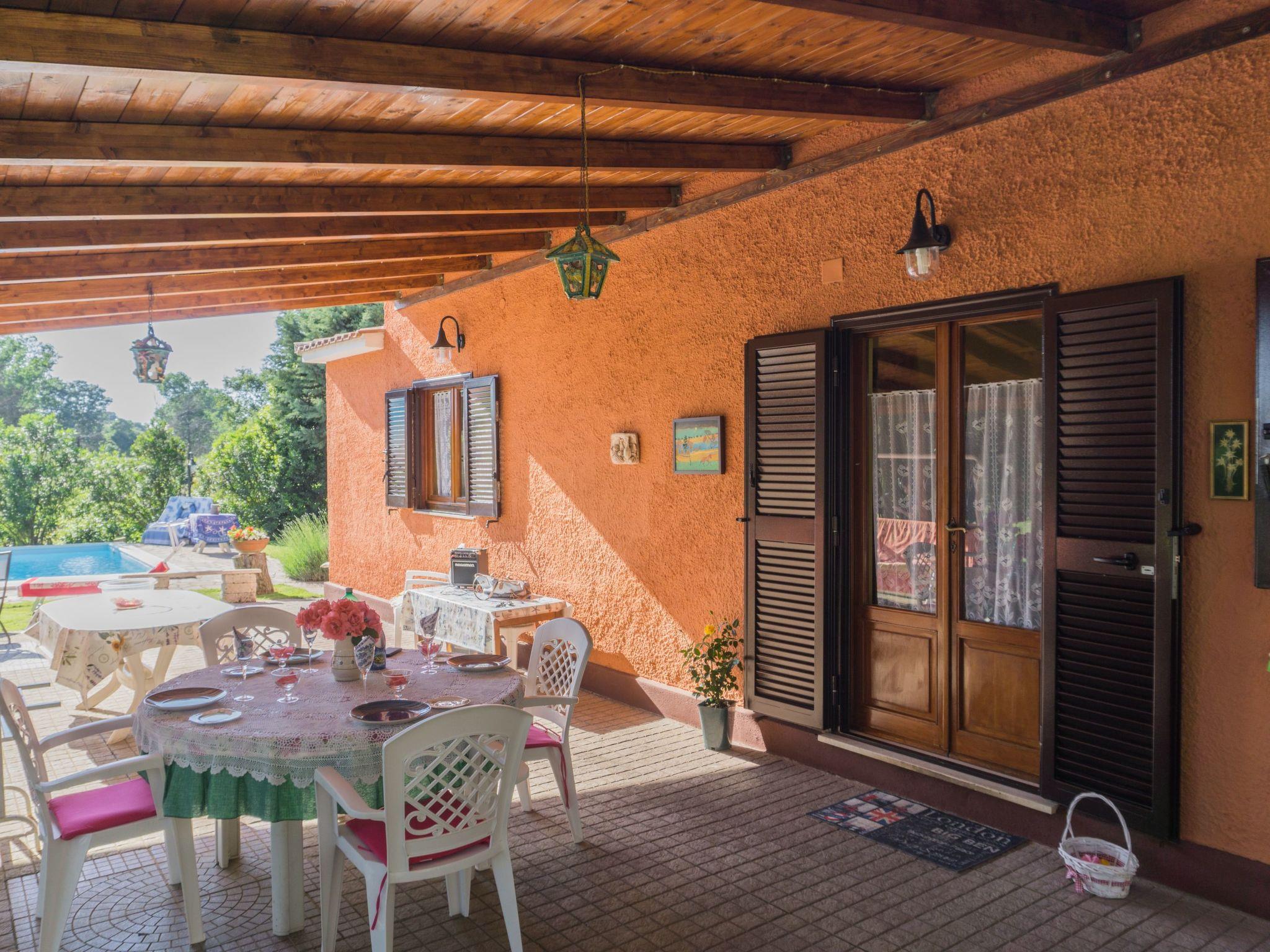 Der Außenbereich des Ferienhauses ist ein wahres Paradies für alle, die gerne Zeit im Freien verbringen. Die Veranda, die immer luftig ist, ist mit einem Schaukelstuhl, Liegestühlen und einem Tisch mit Stühlen ausgestattet, um Momente der Entspannung oder Mahlzeiten im Freien zu genießen. Die Außendusche mit heißem Wasser ist ideal, um sich nach einem Tag am Pool abzukühlen, wo es auch bequeme Sessel gibt. Der große Garten bietet viel Platz zum Entspannen und Genießen der ruhigen Umgebung. Bitte beachten Sie, dass aus Rücksicht auf die anwesenden Tiere (ein Hund und einige Katzen) keine weiteren Haustiere erlaubt sind.