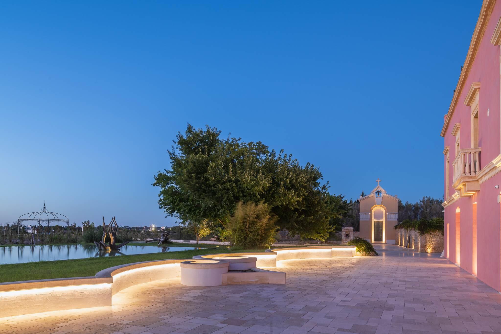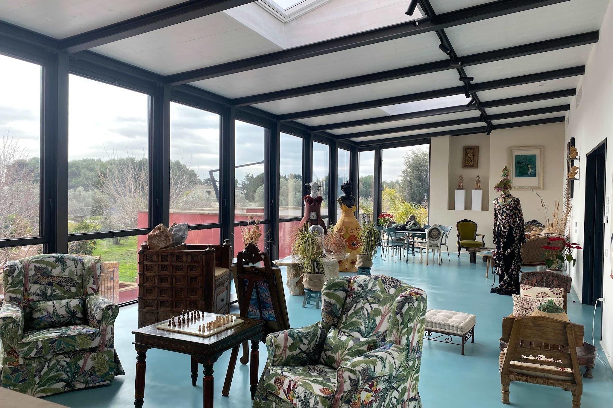 Versteckt zwischen Olivenhainen und sonnenverwöhnten Feldern nahe dem charmanten Dorf Novoli liegt Oasi Verdissimo – eine Welt für sich. Dieses restaurierte Landhaus in Apulien vereint Kreativität, Kultur und Ruhe. Inspiriert von den Reisen der Eigentümer über Kontinente hinweg, lädt dieses weitläufige Anwesen bis zu 24 Gäste ein, eine unvergessliche Mischung aus mediterraner Wärme und künstlerischem Flair zu erleben. Das Anwesen erstreckt sich über fünf üppige Hektar und wirkt wie eine lebendige Leinwand. Schlendern Sie durch die verschlungenen Gartenwege, die nach Zitrusfrüchten und Lavendel duften, meditieren Sie unter uralten Bäumen oder entspannen Sie am glitzernden Außenpool und Whirlpool. In der Abenddämmerung erfüllt Vogelgezwitscher und goldenes Licht die Luft – pure italienische Magie. Im Inneren erzählen zwölf individuell gestaltete Zimmer Geschichten durch ihr Design: von den feurigen Tönen des indisch inspirierten Zimmers Rossa über den erdigen Charme des afrikanischen Zimmers Arancione und das ruhige asiatische Zimmer Gialla bis hin zum naturnahen Zimmer Verde mit seiner privaten Terrasse. Jeder Raum ist von Wärme, Kunst und Authentizität durchdrungen. Wellness-Suchende finden im Spa-Bereich mit Sauna, Hydromassage und Solarium Ruhe und Harmonie, während Abenteuerlustige Radwege, einen Kleinfeldfußballplatz und einen Fitnessbereich nutzen können. Der Bio-Garten versorgt Sie mit frischen Produkten für exquisite, regionale Küche, zubereitet von Ihrem Privatkoch. Nur 23 km vom Ionischen Meer entfernt ist die Oasi Verdissimo der ideale Ausgangspunkt, um die Wunder des Salento zu entdecken – von Gallipolis goldenen Stränden bis hin zur historischen Schönheit Otrantos. Dies ist mehr als nur ein Aufenthalt – es ist ein Fest des Lebens, der Natur und der Verbundenheit – Ihre Oase der Freude im Herzen Apuliens.