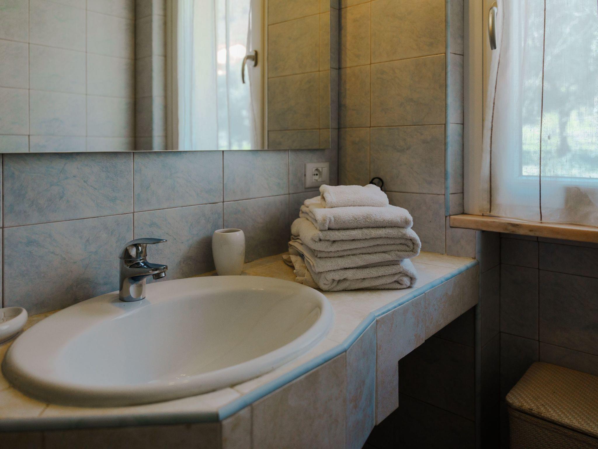 Im Inneren zeichnet sich die Villa durch ihre Aufteilung auf zwei Ebenen aus. Aufgeteilt in 4 abgeschlossene Wohnungen, 2 im Erdgeschoss und 2 auf zwei Ebenen, bietet sie die perfekte Kombination aus Privatsphäre und Gemeinschaftsräumen, die es Gruppen und Familien ermöglicht, Zeit miteinander zu verbringen und gleichzeitig ihre Privatsphäre zu wahren. Jede Wohnung ist mit allen notwendigen Annehmlichkeiten ausgestattet, um einen komfortablen Aufenthalt zu gewährleisten, einschließlich Ventilatoren, um die Zimmer an heißen Sommertagen zu kühlen (keine Klimaanlage).