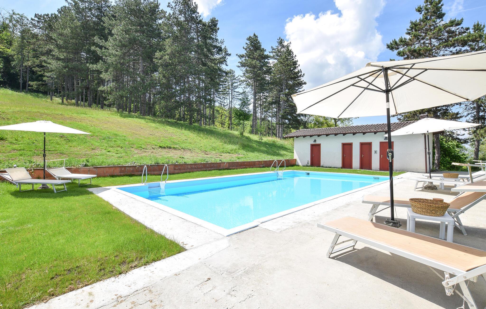 Buchen Sie einen erholsamen Urlaub in diesem komfortablen Ferienhaus mit Pool.