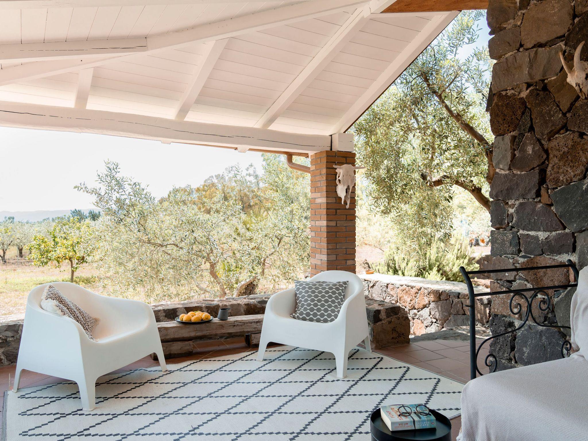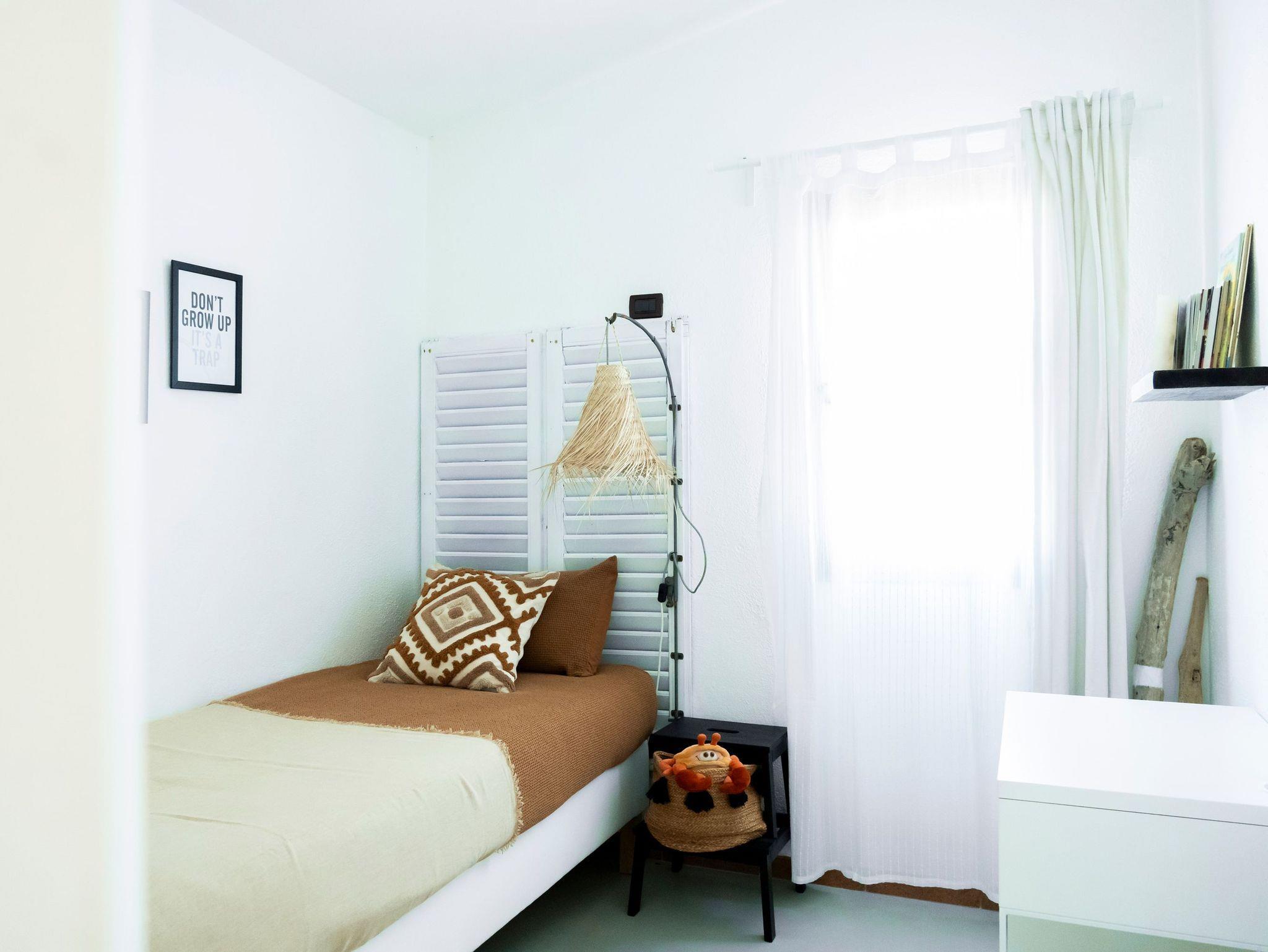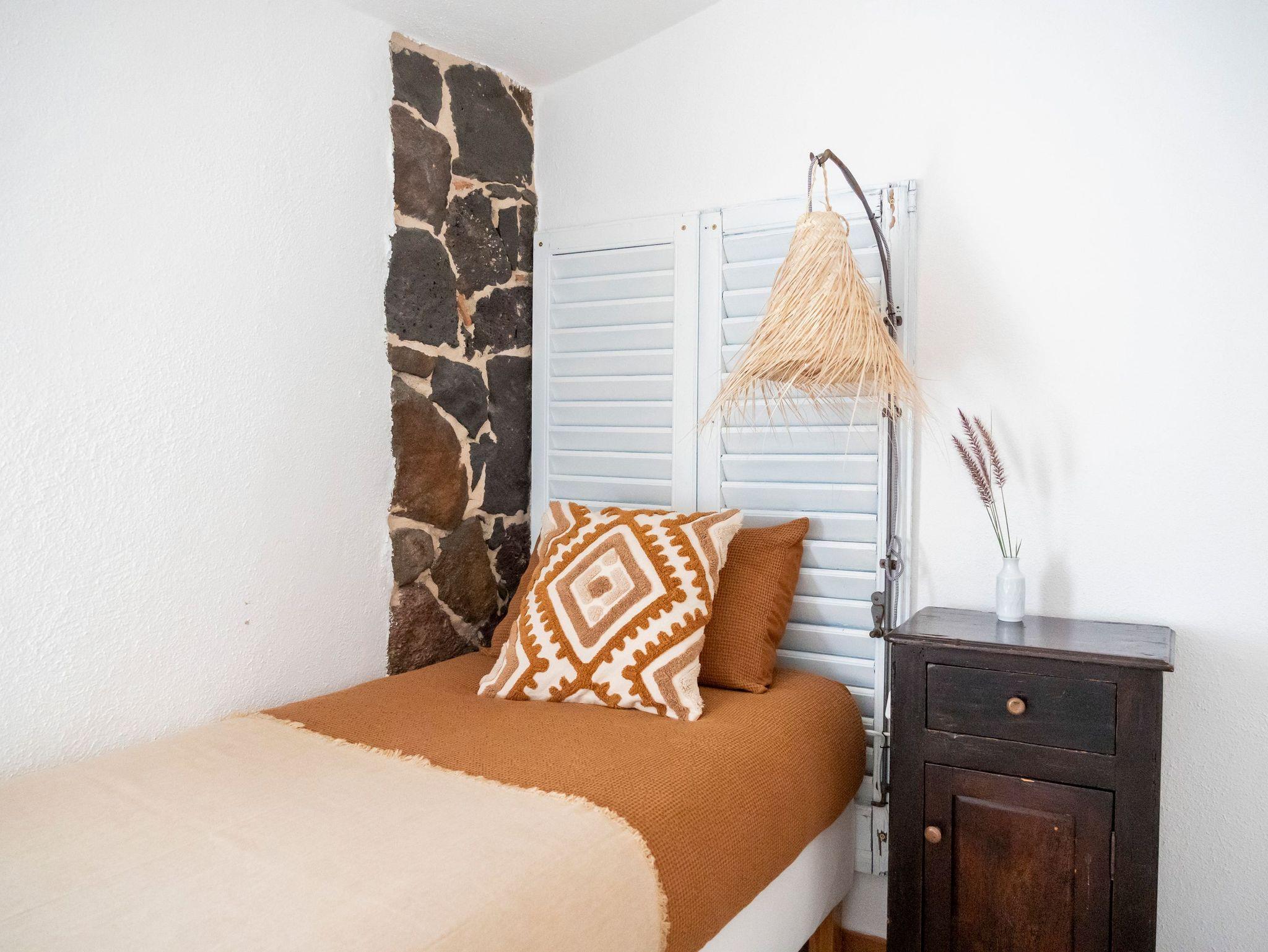 Das Haus eignet sich besonders gut für Familien, die drei Schlafzimmer für bis zu vier Personen benötigen, sowie für Gäste, die Vintage-Chic und eine geräumige Küche schätzen und Naturliebhaber sind. Das Wohnzimmer bietet viel Platz und die beiden Kinderschlafzimmer verfügen jeweils über ein Bett und einen Schreibtisch. Die große Wohnküche mit modernem Tisch und gemauertem Sofa ist der zentrale Raum des Hauses. Das kleinere Badezimmer ist praktisch und modern eingerichtet. Eine überdachte Veranda bietet Schatten zu jeder Tageszeit und hinter den Eukalyptusbäumen kann man das Meer erblicken.