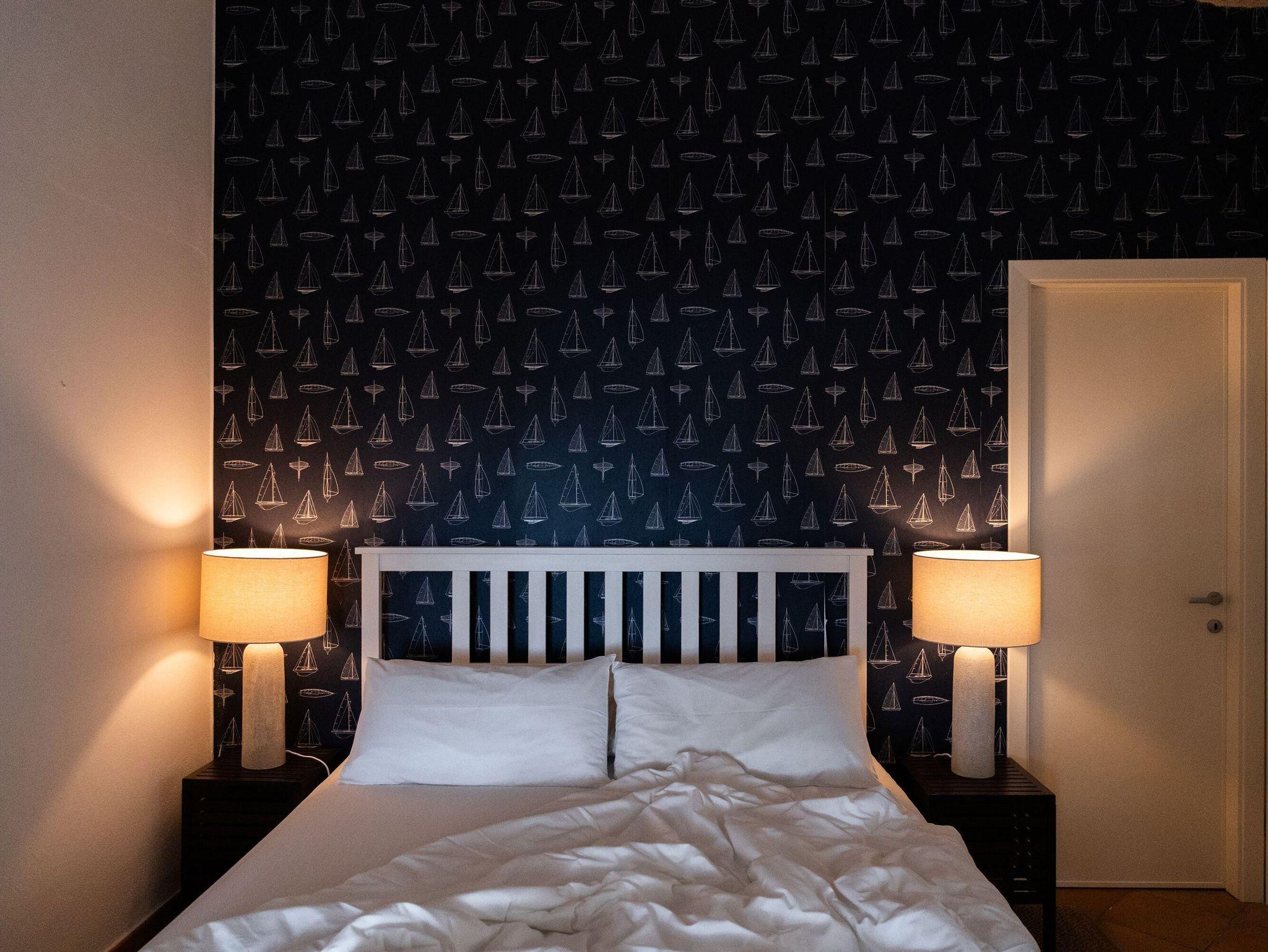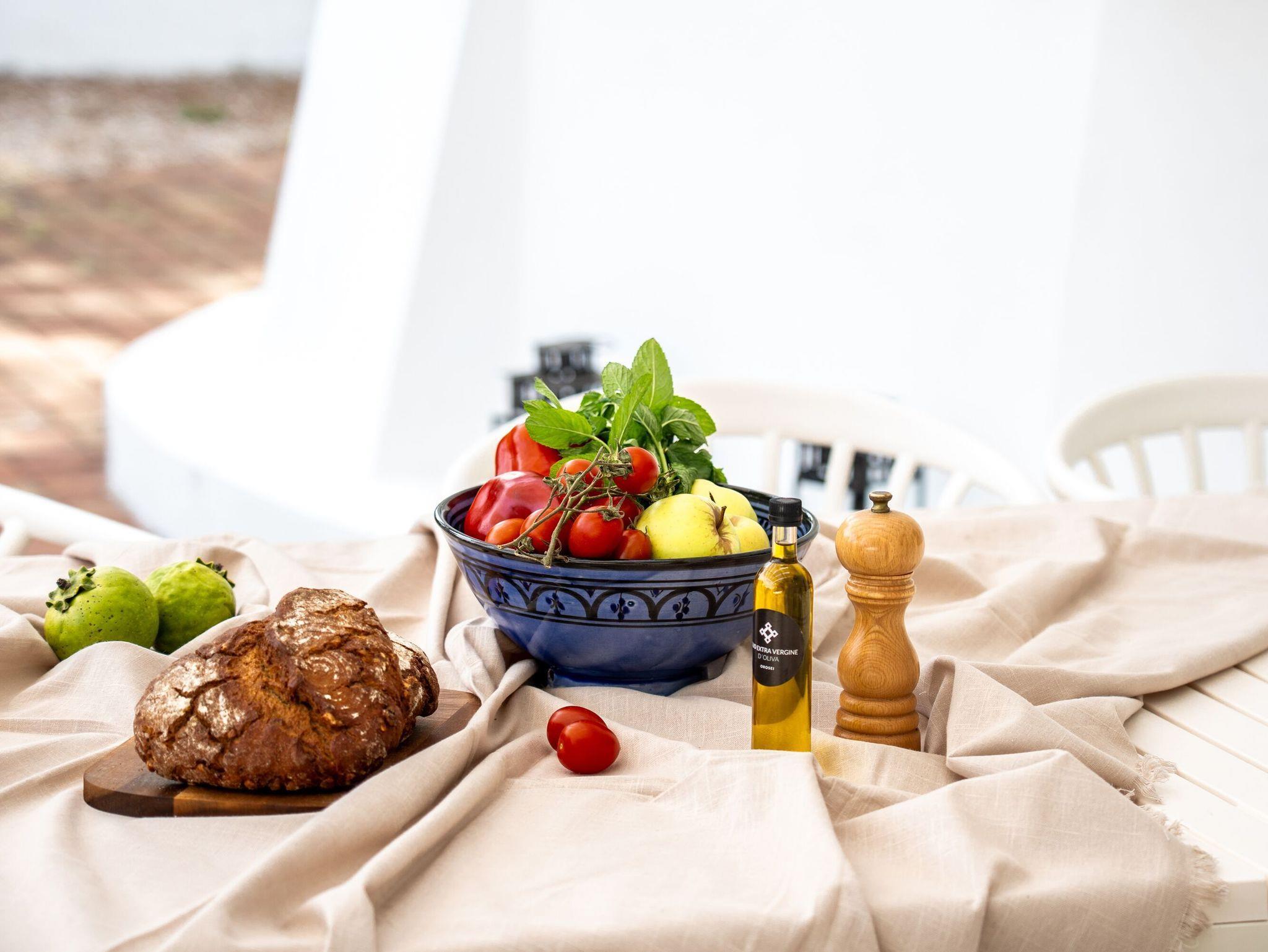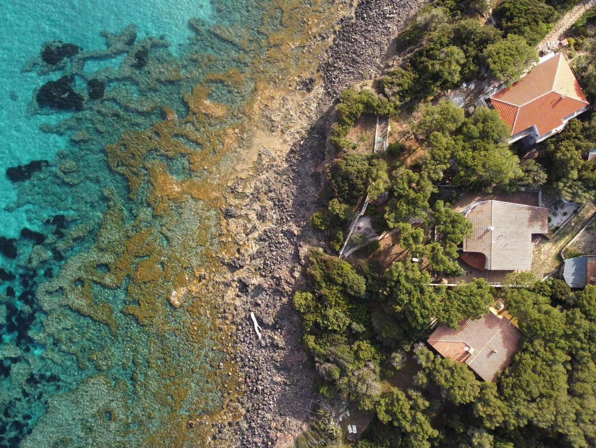 Das Haus wurde in den 80er Jahren erbaut und bietet Platz für bis zu sechs Personen. Der Wohnraum mit offener Küche und gemauertem Sofa hat eine abgerundete Form und erinnert an die Costa Smeralda. Das maritime Interieur sorgt für eine entspannte Atmosphäre. Das große Master-Schlafzimmer verfügt über ein Doppelbett, einen Wandschrank, ein eigenes Badezimmer und direkten Zugang zum Garten mit Meerblick. Das zweite Schlafzimmer hat ein französisches Doppelbett, aber keinen Schrank. Das dritte Schlafzimmer ist schmal und hat zwei Einzelbetten sowie einen Wandschrank. Auch von diesem Zimmer aus gelangt man direkt in den Garten. Ein zweites Badezimmer mit Dusche befindet sich im Flur.