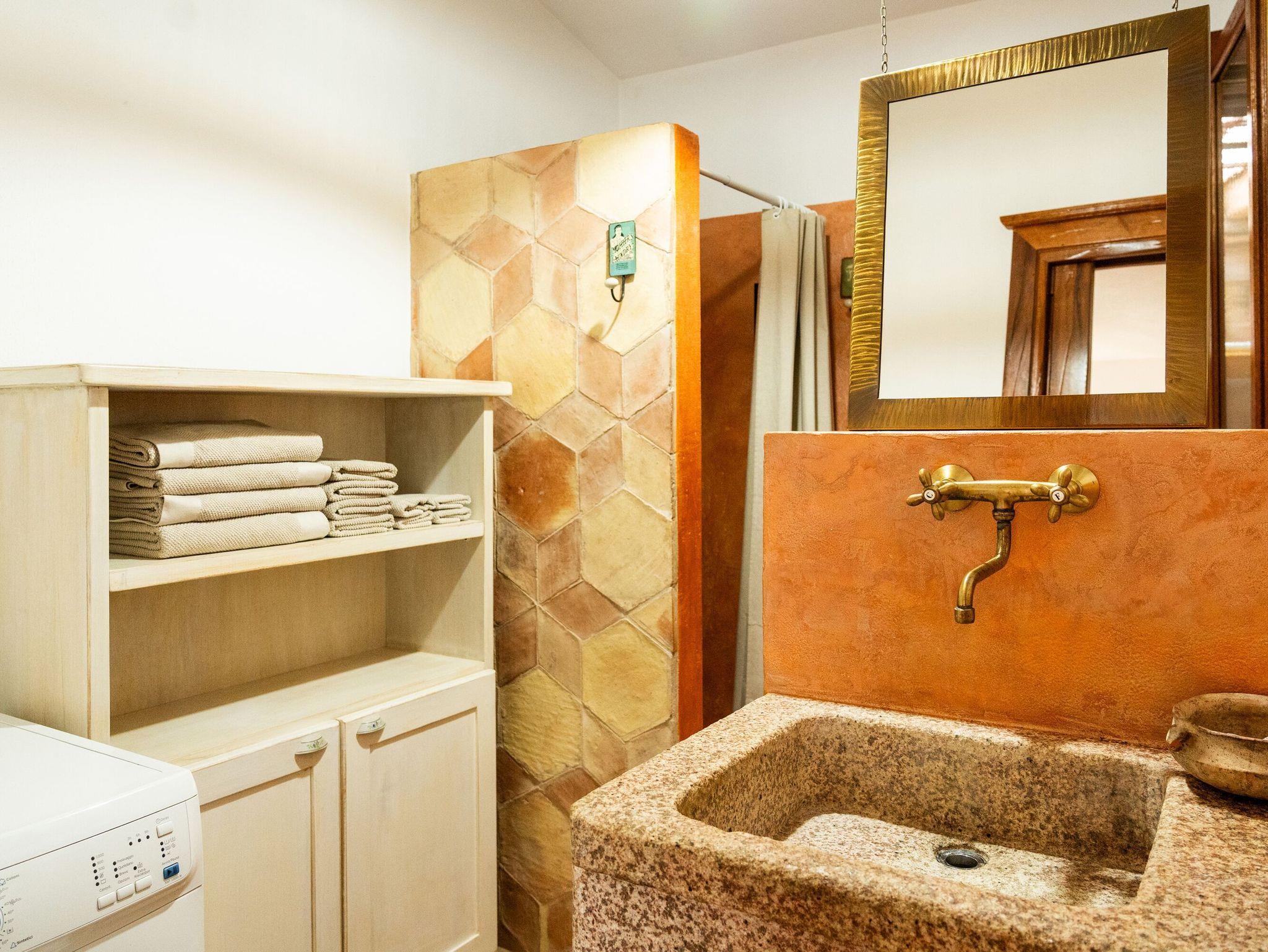 CASA FUILE verfügt über zwei schöne Schlafzimmer und bietet Platz für bis zu 4 Personen. Die gemütliche Wohnküche mit Kamin und Familientisch ist auch in kühleren Monaten ein angenehmer Aufenthaltsort. Durch die große Terrassentür entsteht eine Verbindung zwischen Wohnbereich und dem schattigen Außenbereich. Die handgemauerten Elemente in der Wohnküche verleihen CASA FUILE einen ganz besonderen Charme. Zusätzlich gibt es in jedem Zimmer eine Klima-Heizeinheit. Die Highlights dieser Unterkunft sind der atemberaubende Panoramablick auf das Meer und die Berge, die absolute Ruhe und die typisch sardische Atmosphäre.