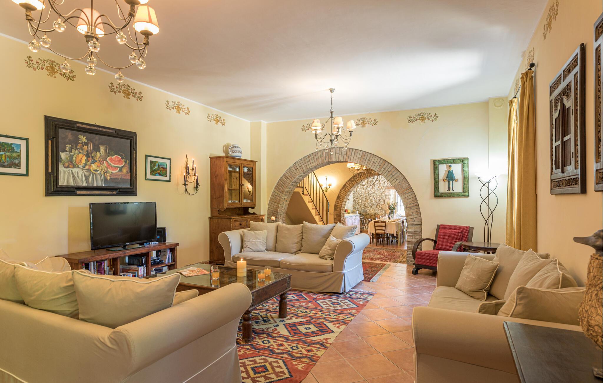 Das großzügige Ferienhaus nahe Orvieto, eingebettet in die grüne Hügellandschaft Mittelitaliens, bietet auf drei Etagen Platz für mehrere Familien oder eine größere Reisegruppe, die gemeinsam entspannen und die Region erkunden möchten. Erleben Sie gemütliche Abende im großen Wohnzimmer mit Kamin oder bereiten Sie ein festliches Essen in der voll ausgestatteten Küche zu. Nutzen Sie die zweite Küche, falls Sie noch mehr Raum zum Kochen benötigen, und genießen Sie Ihre Mahlzeiten im stilvollen Essbereich oder auf der großzügigen Veranda mit gemauertem Grill.