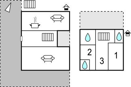 Badezimmer (nr. 3) - WC. Warmes und kaltes Wasser. Dusche