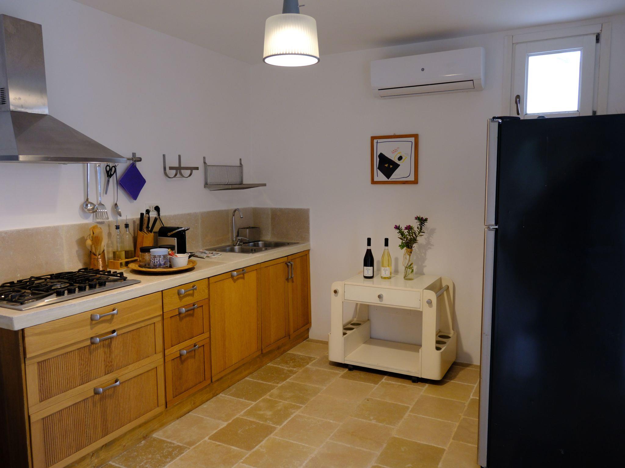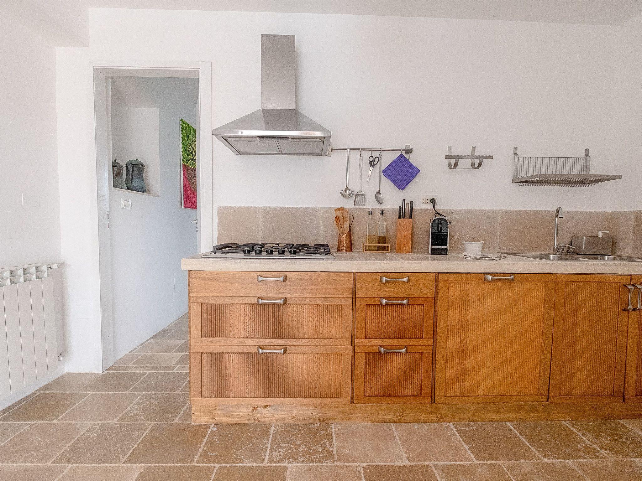 Die Wohnungen innerhalb der Anlage bieten außergewöhnlichen Komfort: vom Blauen Haus, der prestigeträchtigsten Wohnung, bis zu den alten Trulli, vom typischen Steinhaus namens Lamia bis zur Villa mit einer großzügigen Veranda. Die "Villa" verfügt über eine geräumige Küche mit Geschirrspüler, ein Doppel- und ein Dreibettzimmer, zwei Bäder mit Dusche und eine Badewanne im Hauptschlafzimmer sowie ein gemütliches Wohn- und Esszimmer mit einer hellen Veranda, die sich zum Garten hin öffnet.