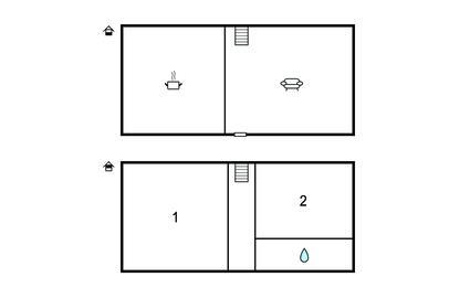 Badezimmer (nr. 1) - WC. Warmes und kaltes Wasser. Dusche