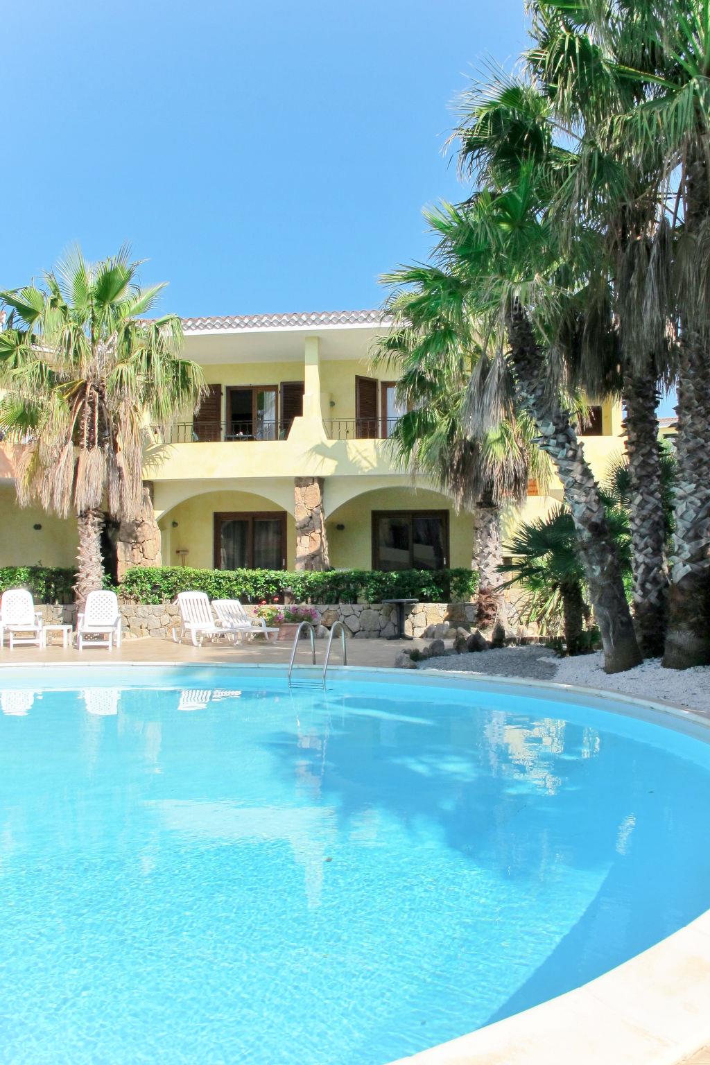 Schöne Ferienanlage "Green Village", auf 2 Stockwerken, umgeben von Bäumen. 42 Wohnungen in der Residenz. 500 m vom Zentrum von Palau, 42 km vom Zentrum von Olbia, 150 m vom Meer, 150 m vom Strand. Zur Mitbenutzung: grosser, gepflegter Garten (nicht eingezäunt) mit Rasen und Pflanzen, Schwimmbad rund (11 m2, 140 - 230 cm tief, saisonale Verfügbarkeit: 28.Mar. - 30.Okt.). Terrasse, Grill, Kinderspielplatz. In der Anlage: Empfang, Bar, Waschmaschine, Wäschetrockner (zur Mitbenutzung), Fahrradverleih. Frühstück möglich auf Anfrage (extra). Zentralparkplätze. Einkaufsgeschäft 750 m, Supermarkt 1.6 km, Bushaltestelle 1.5 km, Fähre "Olbia" 42 km, Sandstrand "'Capo d'Orso Marina'" 250 m. Golfplatz (9 Loch) 3.7 km. Es kann auf Anfrage ein Transfer ab Flughafen zum Ferienobjekt organisiert werden. Bitte beachten: Das Foto ist nur ein Hausbeispiel.