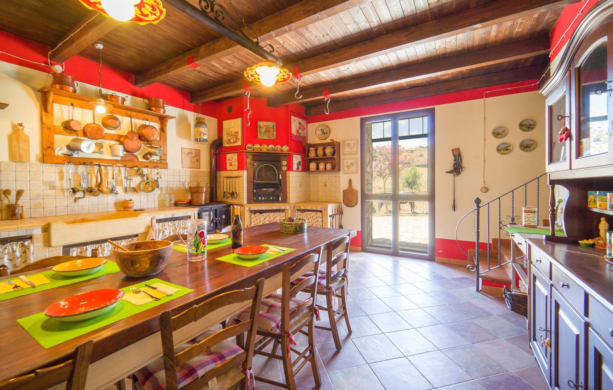 Die geräumige Unterkunft bietet den perfekten Rückzugsort für eine erholsame Auszeit und besticht durch ihre rustikale Schönheit und den atemberaubenden Blick auf die umliegende Hügellandschaft. Die ländliche Idylle tritt sowohl im Außenbereich als auch in jedem Winkel des Hauses deutlich hervor. Beginnen Sie Ihren Tag mit einem gemütlichen Frühstück in der farbenfrohen und liebevoll dekorierten Essküche. Auf der schattigen Terrasse, die mit prächtigem Laub bedeckt ist, können Sie den weiten Blick auf die sanften Hügel genießen und die Seele baumeln lassen. Erkunden Sie dann die weitläufige Umgebung Ihres Ferienhauses, die sich hervorragend für entspannende Spaziergänge und Wanderungen eignet.