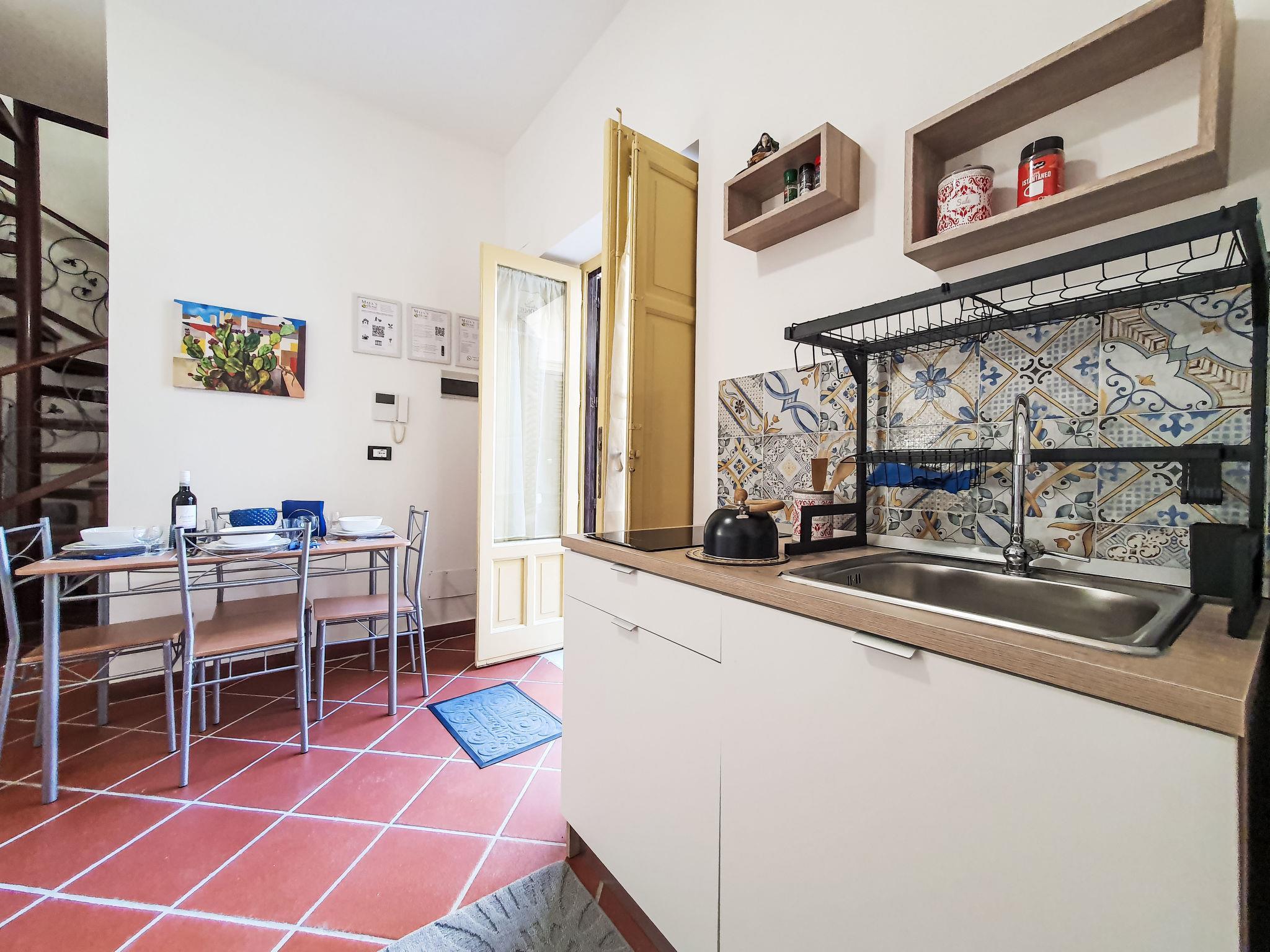 "Maya's Home Palermo", 3-Zimmer-Reihenhaus 50 m2 auf 2 Stockwerken, im Erdgeschoss. Renoviert im Jahre 2024, komfortabel und geschmackvoll eingerichtet: Wohn-/Esszimmer mit 1 Diwanbett, TV, Klimaanlage und Warmluftheizung. Ausgang zum Gartensitzplatz. Kochnische (2 Induktionskochplatten, Toaster, Wasserkocher, Mikrowelle, elektrische Kaffeemaschine). Dusche/Bidet/WC. Obergeschoss: (Wendeltreppe) 1 Doppelzimmer mit TV, Klimaanlage und Warmluftheizung. 1 Zimmer mit 1 Wandklappbett und Ventilator. Heizung, Warmluftheizung, Boiler (50 Liter). Heizung nur verfügbar von 01.12. bis 31.03, Heizung nicht in allen Räumen. Balkonmöbel. Zur Verfügung: Kinderhochstuhl, Babybett bis 2 Jahre, Haartrockner. Internet (Wireless LAN, gratis). Bitte beachten: Wohnung auf Hofseite. Maximal 1 Haustier/Hund erlaubt. Feuerlöscher. IT082053C2LEEEVOI6