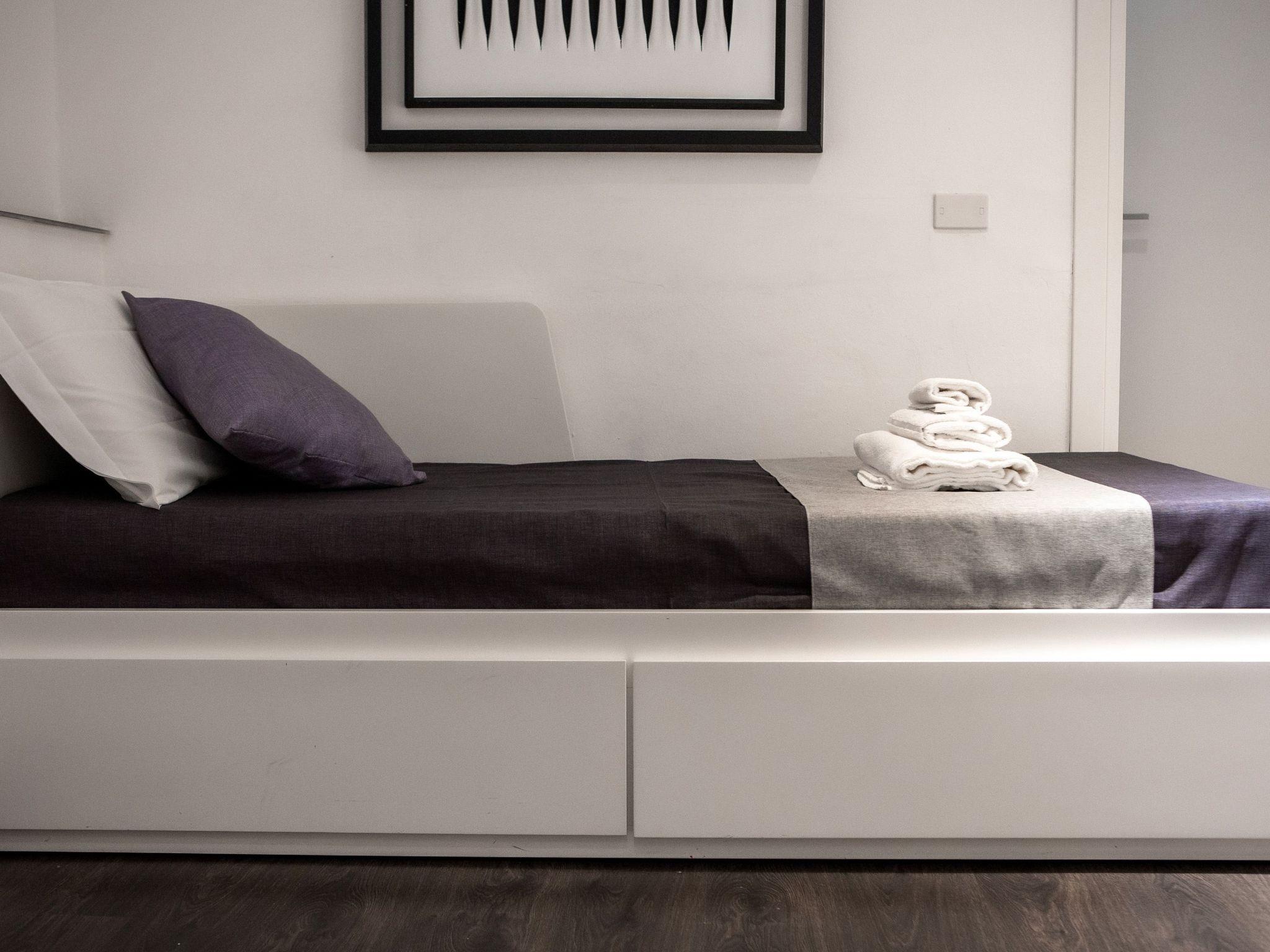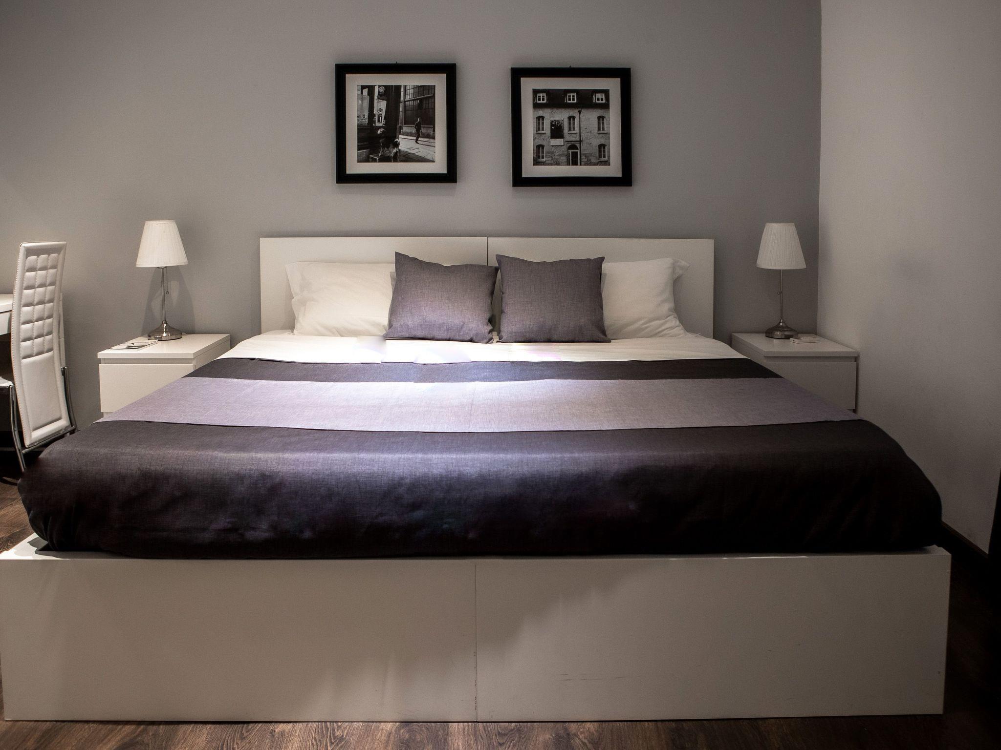 Die Wohnung ist in zwei Etagen aufgeteilt. Die Wohnung ist schallisoliert, frisch renoviert und komplett möbliert. Im Obergeschoss befindet sich ein Schlafzimmer mit einem großen Doppelbett, einem Einzelbett, das bei Bedarf in ein Doppelbett umgewandelt werden kann, einem Kleiderschrank, Nachttischen, einer Kommode und einem Schreibtisch mit Tischlampe. Ebenfalls im Obergeschoss befindet sich das große Badezimmer. Im Erdgeschoss befindet sich der Wohnbereich, in dem sich eine Doppelschlafcouch befindet. Ebenfalls im Erdgeschoss befinden sich die Küche und das zweite Badezimmer. Die gesamte Wohnung ist klimatisiert. Wir haben auch an Ihre Momente der Erfrischung nach langen Spaziergängen zur Entdeckung der Stadt gedacht und haben die Wohnung mit einem Smart TV ausgestattet. Die Wohnung ist mit kostenlosem Wi-Fi ausgestattet. Max Zusatzbetten: 2 Max Kinderbetten: 2 Die Wohnung ist mit einem Safe (kostenlos) ausgestattet.