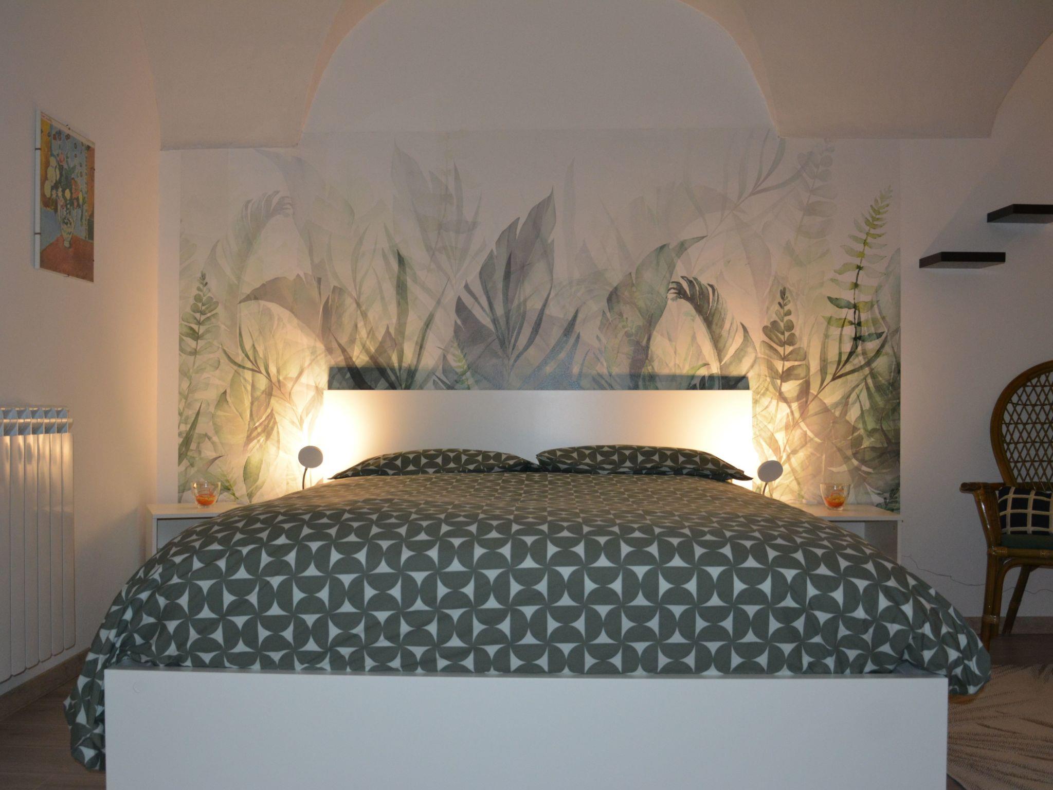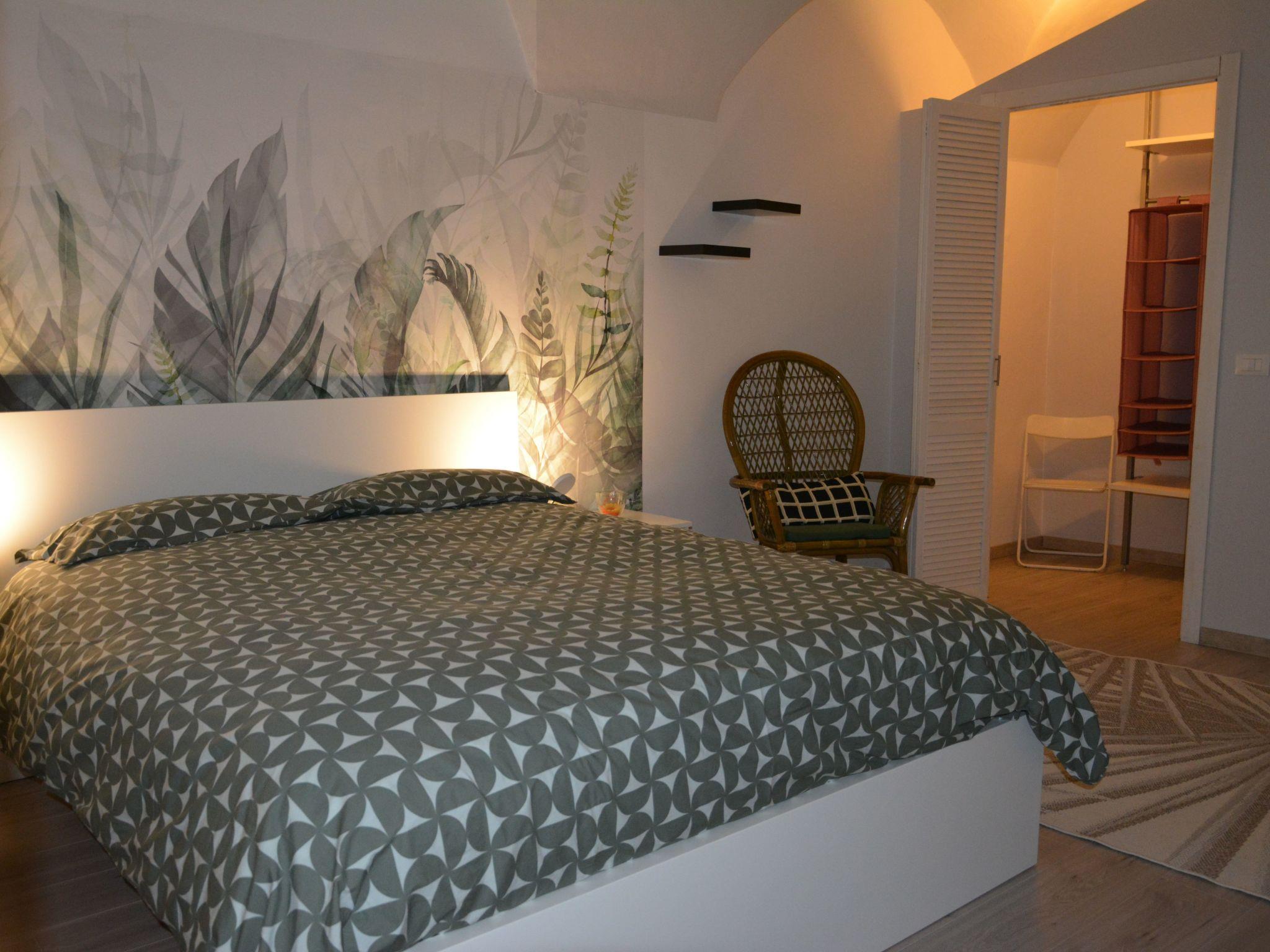 Das Schlafzimmer mit Doppelbett ist groß und gemütlich und verfügt über einen praktischen begehbaren Kleiderschrank und bietet die Möglichkeit, ein weiteres Einzelbett oder ein Kinderbett für die Kleinen aufzustellen.