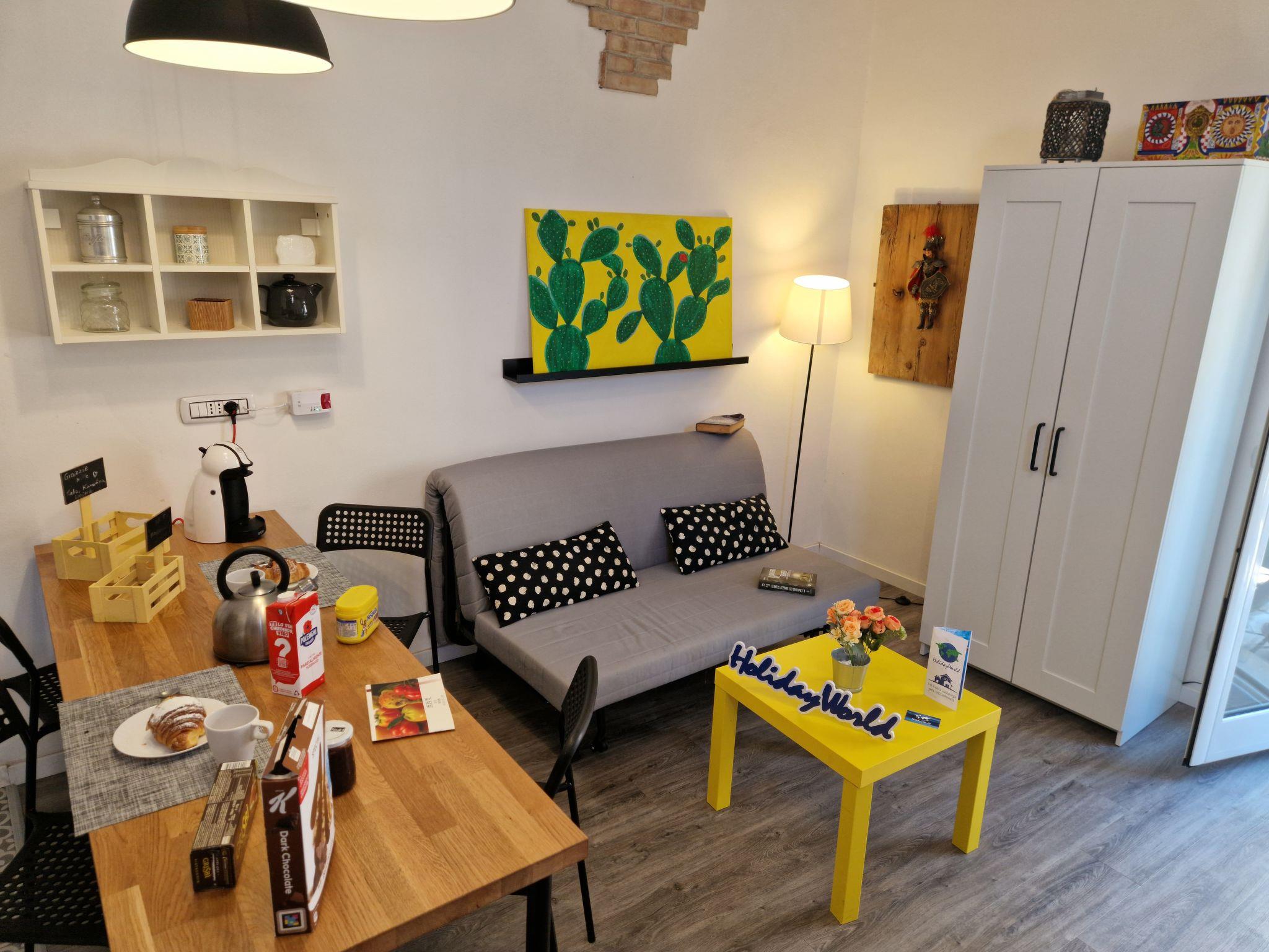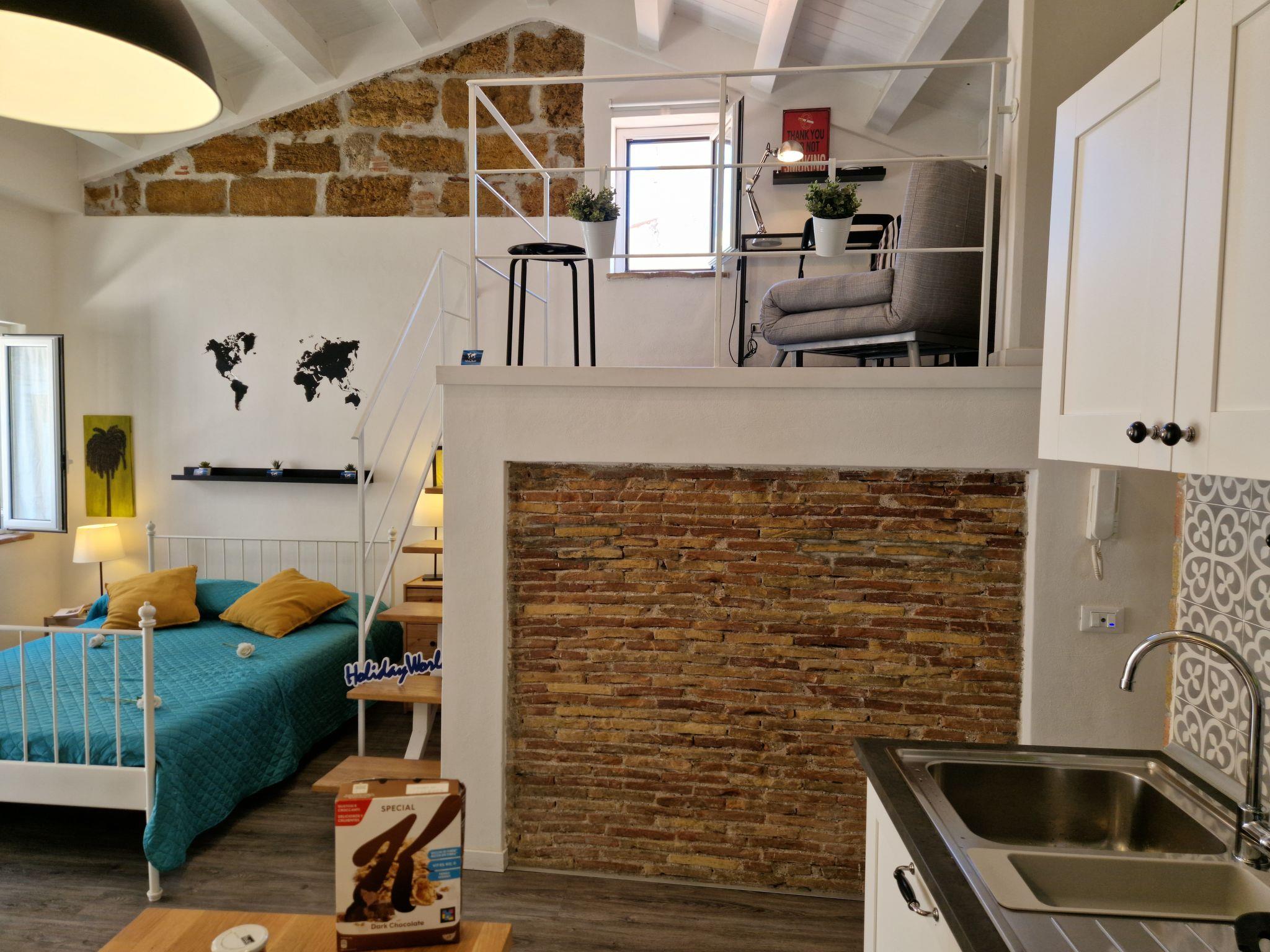 Das Fico D'india ist ein helles und praktisches Studio-Apartment und befindet sich im Herzen der lebendigen Movida von Palermo, in einer zentralen Gegend voller Leben und Annehmlichkeiten. Der Raum ist gemütlich und gut organisiert, mit einer funktionellen Küchenzeile, einem Doppelbett und einem bequemen Schlafsofa, ideal für mehrere Personen. Ein elegantes Zwischengeschoss bereichert den Raum mit einem einzelnen Sesselbett, ideal als zusätzlicher Schlafplatz oder für entspannende Momente. Die Wohnung verfügt außerdem über ein modernes Badezimmer mit Dusche und Bidet, das mit viel Liebe zum Detail eingerichtet wurde. Der Balkon bietet den ganzen Tag über natürliches Licht und einen angenehmen Platz im Freien, um die städtische Atmosphäre zu genießen.