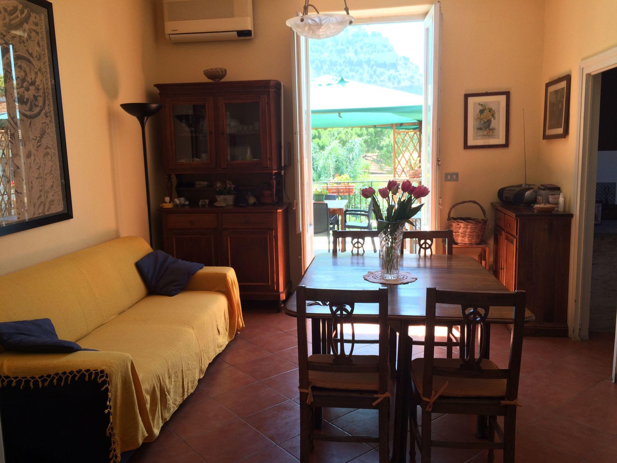 Die Wohnung im zweiten Stock der Villa, ca. 54 qm, besteht aus folgenden Räumen: Einem klimatisierten Wohn-/Esszimmer, Flachbildfernseher und einem Schlafsofa für zwei Personen; einem Schlafzimmer (neben dem Wohnzimmer) mit einem Doppelbett und einem großen Ventilator; einer voll ausgestatteten Küche mit Gasherd, Elektrobackofen, Dunstabzugshaube, Geschirrspüler, großem Kühlschrank mit Gefrierfach, Kaffeemaschine, Toaster, ausreichend Tellern und Gläsern, Milchtassen, Tee, Kaffee, ausreichend Besteck, Tischdecken, Töpfen und Küchenutensilien, Bügeleisen und Bügelbrett. Ein zweites Schlafzimmer mit zwei Etagenbetten und einem Ventilator. Schließlich zwei Badezimmer mit Dusche und Bidet; in einem befindet sich auch eine Waschmaschine. Die Wohnung wird durch ein autonomes Methangassystem beheizt und durch eine Klimaanlage gekühlt, die sich im Esszimmer, dem zentralen Raum der Wohnung, befindet. Das Haus ist sehr gut belüftet, aber wenn es draußen 40 Grad warm ist, schließt man sich ein und schaltet die Klimaanlage ein.