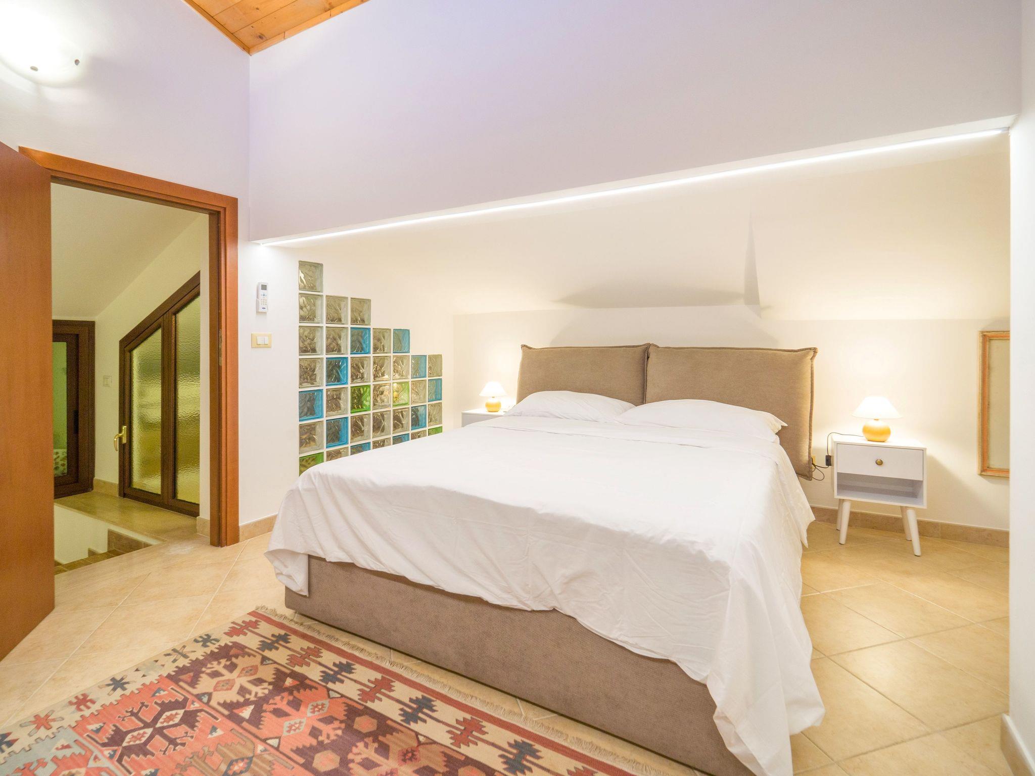 Mamma Maria Ela verfügt über vier Schlafzimmer (zwei davon mit eigenem Bad), davon zwei Doppelzimmer und zwei Zweibettzimmer, sowie vier Bäder, von denen zwei mit Dusche und eines mit Badewanne ausgestattet sind.