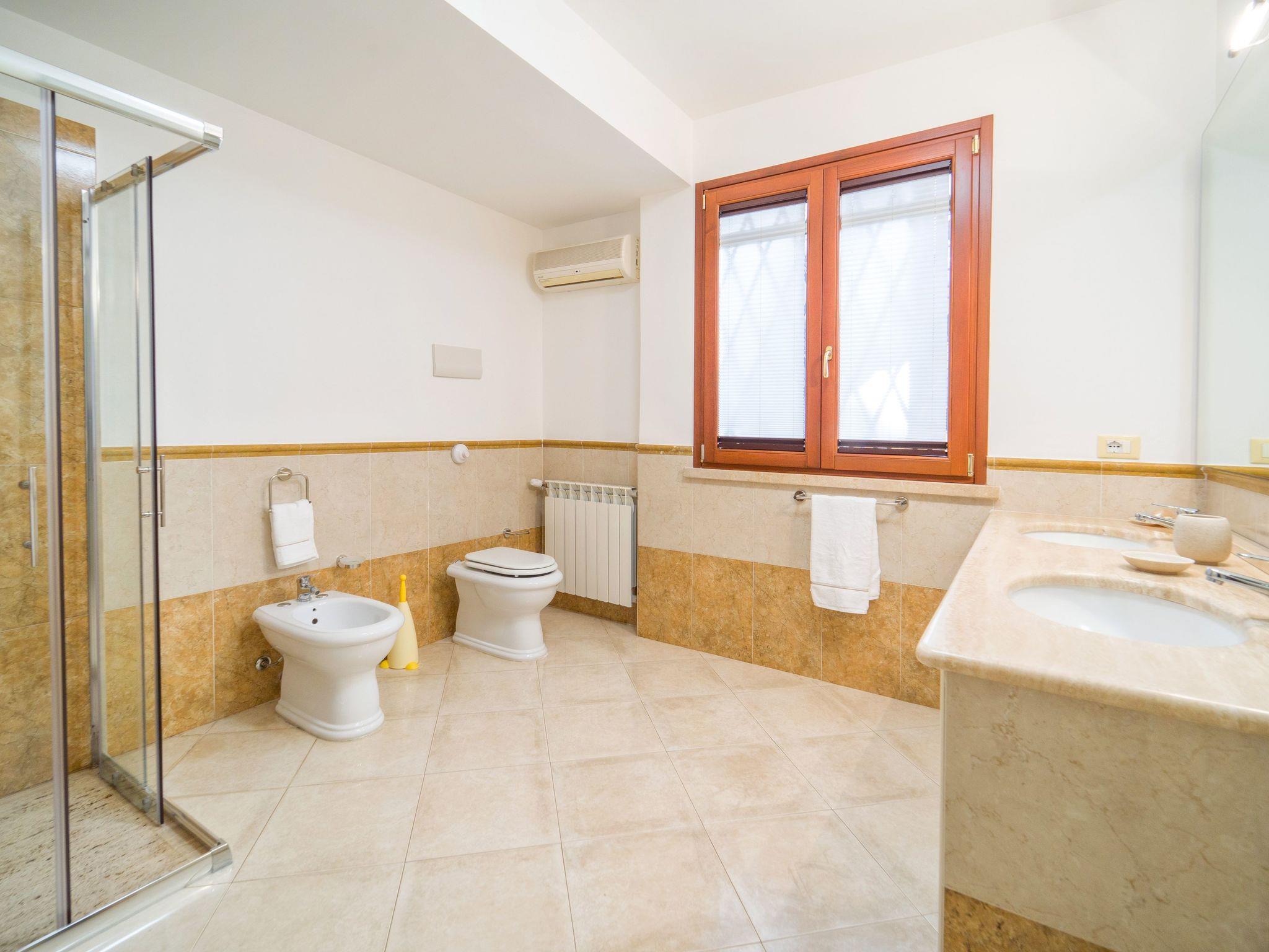 Der Poolbereich verfügt auch über ein Bad mit Dusche und die Villa bietet auch einen Grillplatz.