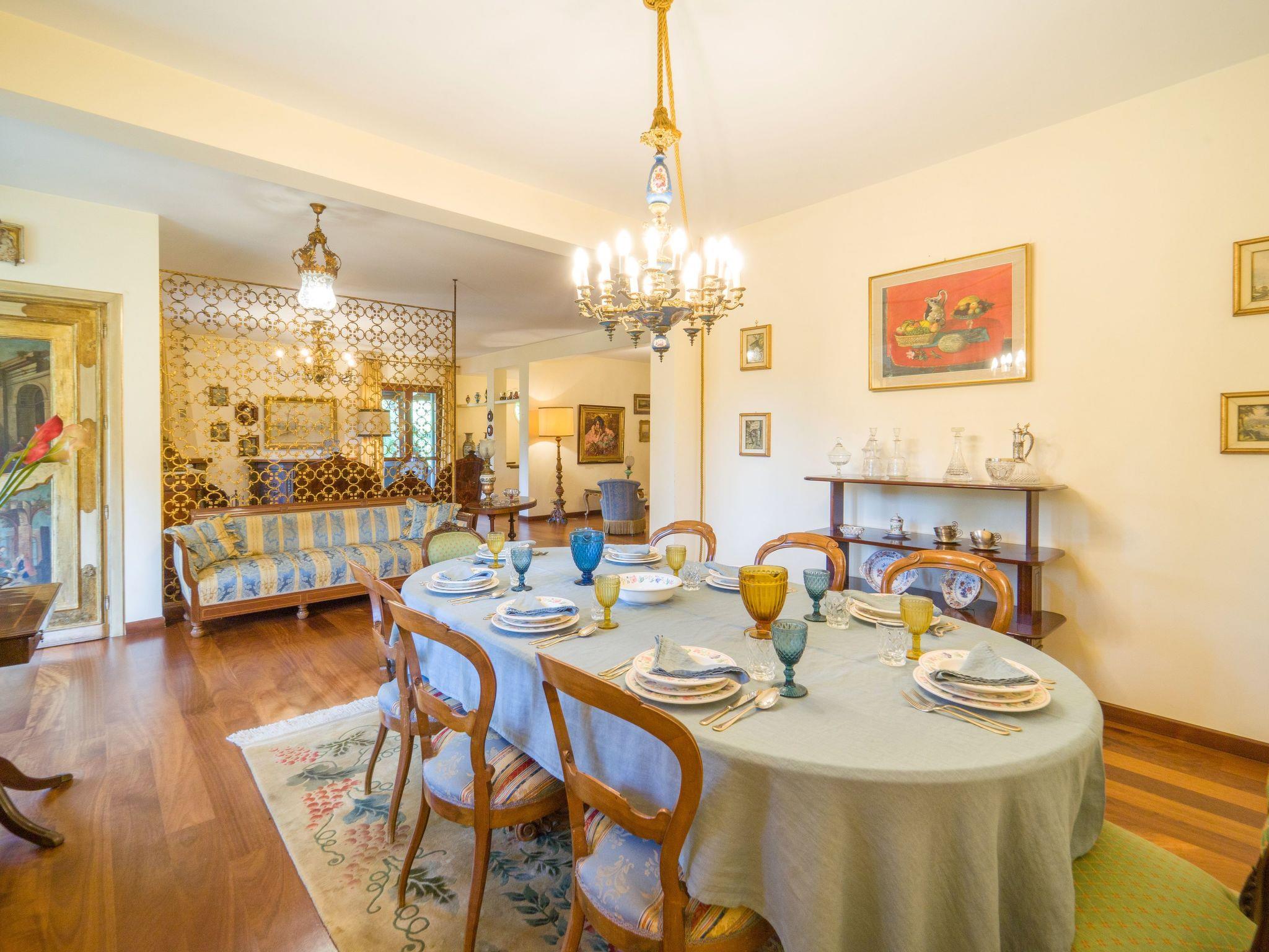 Das Innere des Hauses ist besonders charmant mit einem Wohnzimmer, das mehrere Bereiche mit schönen Sofas, raffinierten Sesseln, einem schönen Esstisch und einer hellen und luxuriösen Atmosphäre hat.