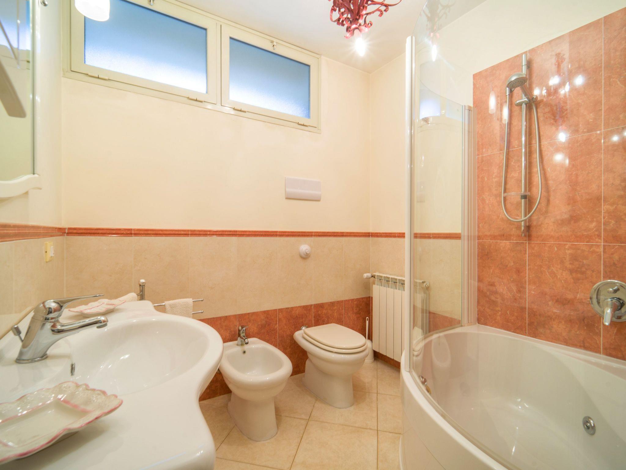 Zimmer (4) und Bäder (5): ein Schlafzimmer mit Doppelbett und eigenem Bad (Dusche); ein Schlafzimmer mit Doppelbett; ein Schlafzimmer mit zwei Einzelbetten; ein Schlafzimmer mit Doppelbett im Zwischengeschoss und eigenem Bad (Dusche); ein Schlafsofa im Wohnbereich; ein Bad mit Duschwanne; ein Bad im Wohnbereich; ein Bad mit Dusche im Poolbereich
