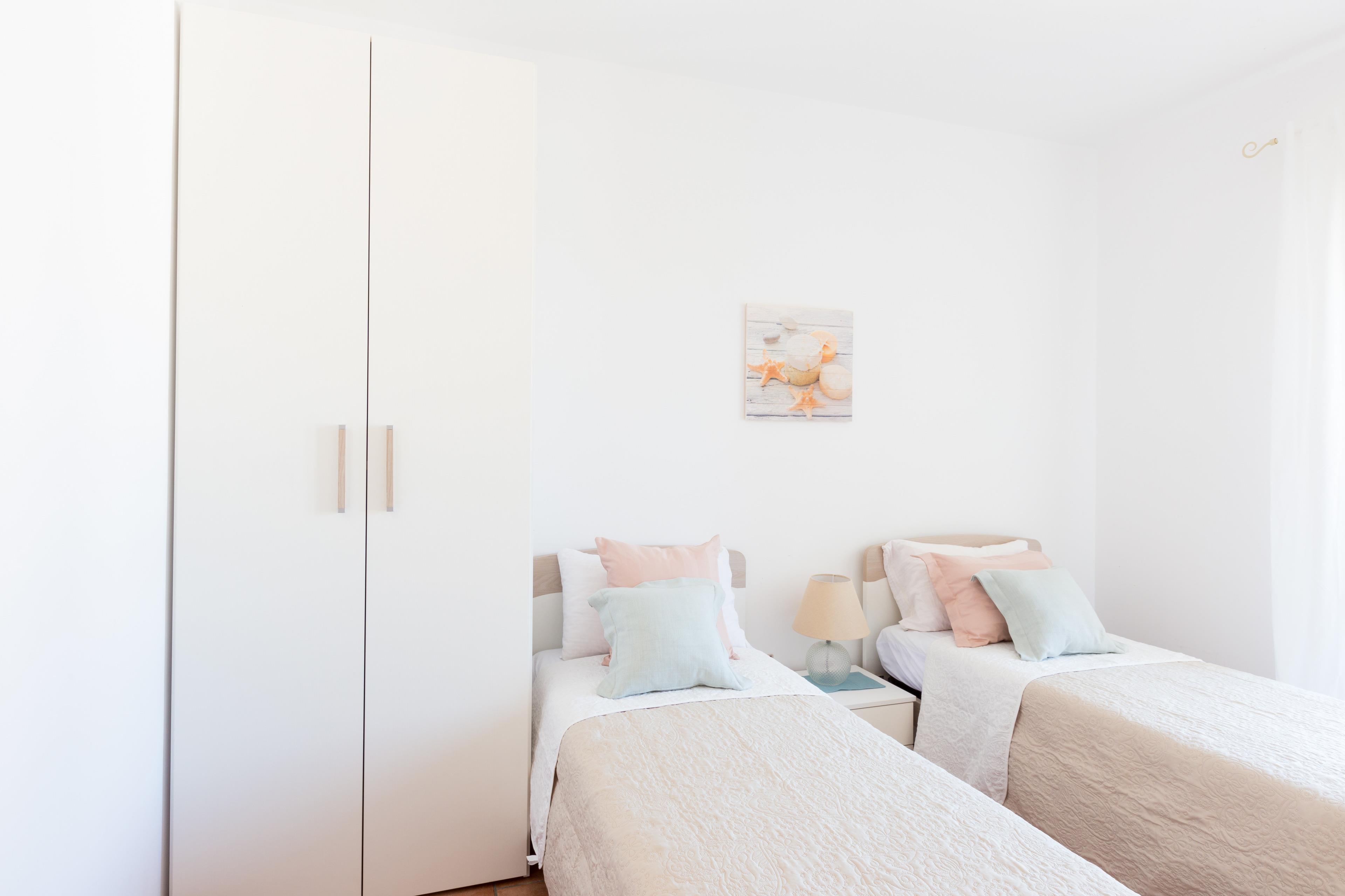 Die Wohnung verfügt über drei Außenbereiche, von denen zwei Veranden auf zwei Seiten des Grundstücks angeordnet sind, um zu jeder Tageszeit Kühle zu gewährleisten. Auf dem Dach befindet sich eine Terrasse mit Meerblick. Im Erdgeschoss ist der Parkplatz bewacht.