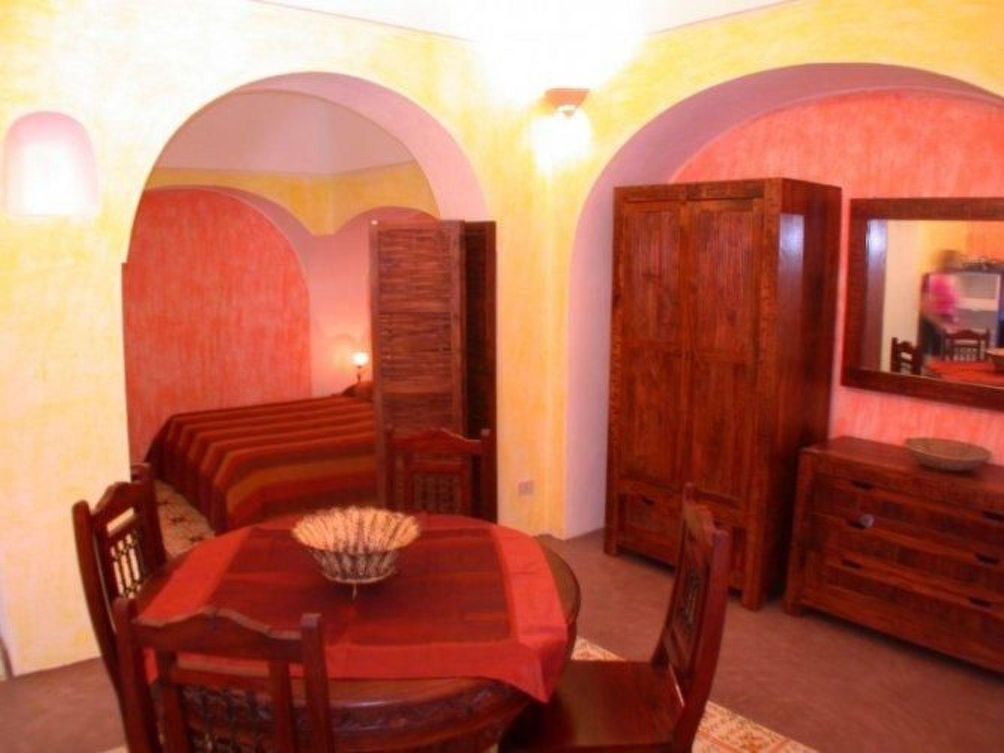 Die Struktur spiegelt die strukturellen Merkmale der alten Dammusi Konstruktion. Typisch sind ein Schlafbereich mit einem Doppelbett und ein an das Wohnzimmer angrenzendes Schlafzimmer mit zwei Einzelbetten. Bei Bedarf lassen sich die beiden Einzelbetten auch zu einem Doppelbett zusammenstellen. Der Wohnbereich ist mit einer Küchenzeile und einem Esstisch ausgestattet. Natürlich gibt es auch ein Bad mit Dusche. Die Einrichtung ist einfach und funktionell.