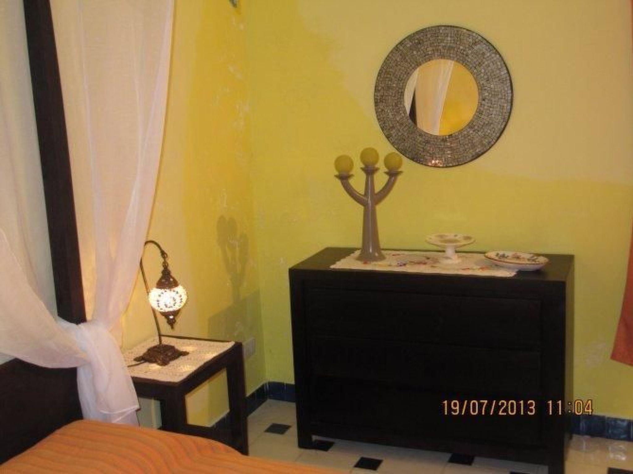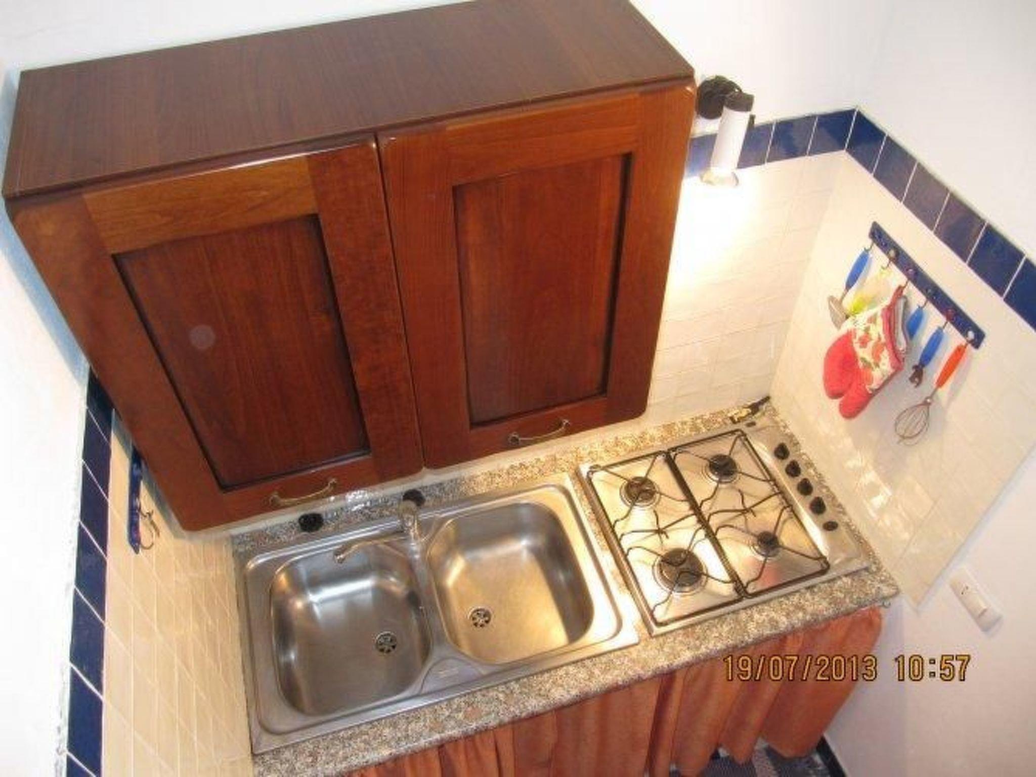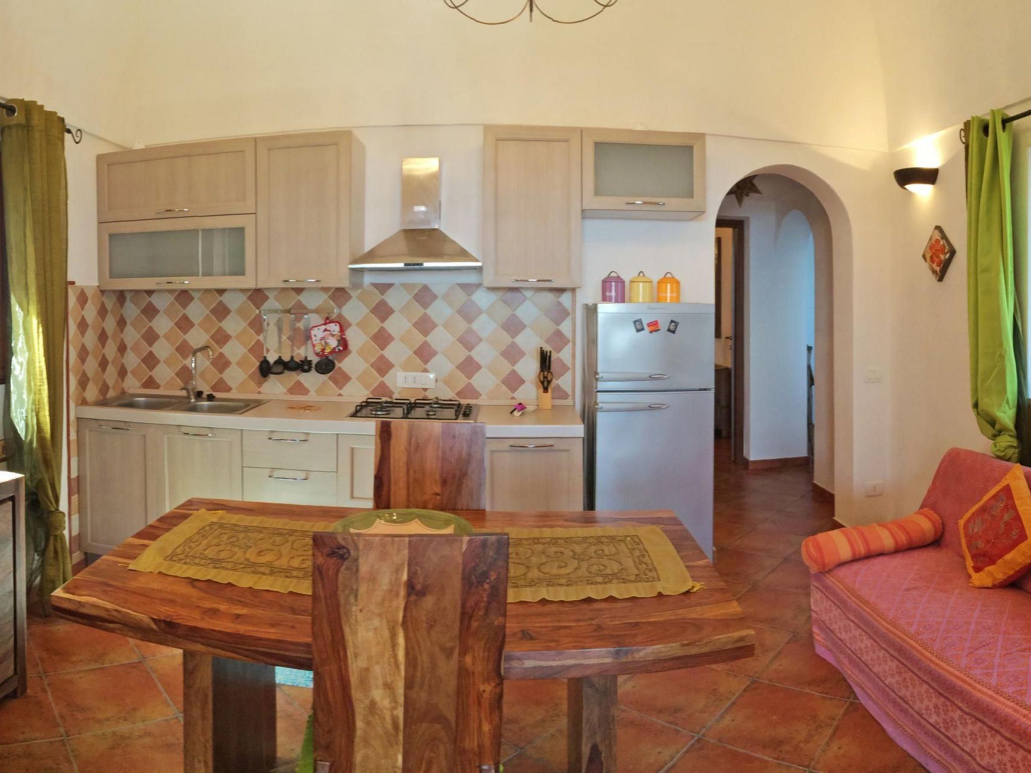Das Dammuso besteht aus einem großen Wohnzimmer mit Kochnische, einem Badezimmer mit Dusche und einem Schlafzimmer mit einem Doppelbett. In dem großen Flur, der zum Schlafzimmer führt, gibt es genügend Platz, um bei Bedarf ein zusätzliches Bett aufzustellen. Die Einrichtung ist einfach und überschaubar, aber geschmackvoll und angenehm.
