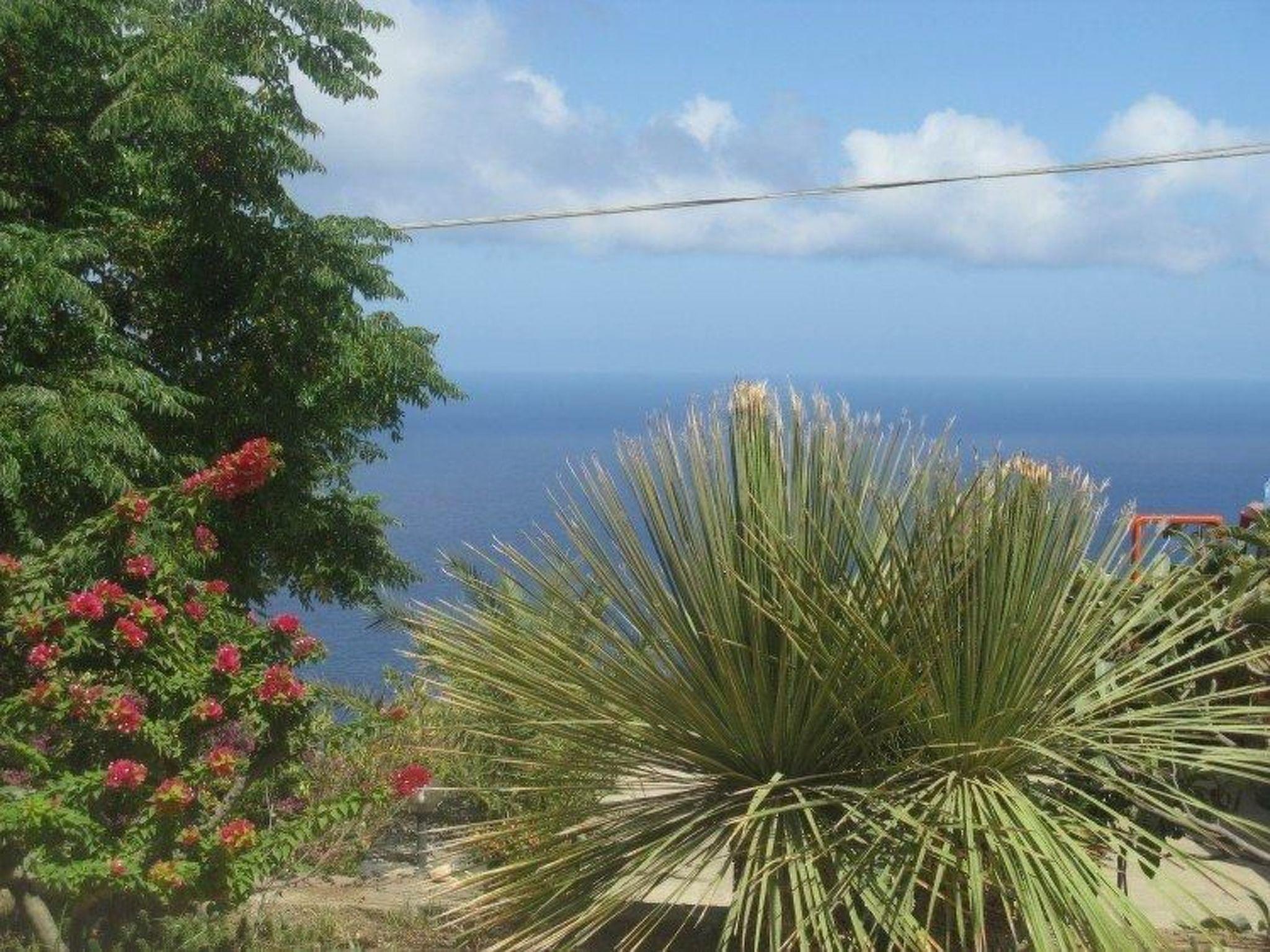 Draußen gibt es eine große möblierte überdachte Terrasse mit einem atemberaubenden Blick auf das Meer.