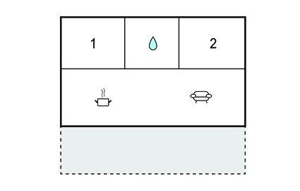 Wohnraum/Küche - 1 Schlafmöglichkeit. (Schlafsofa,Matratze,Sonstiges).