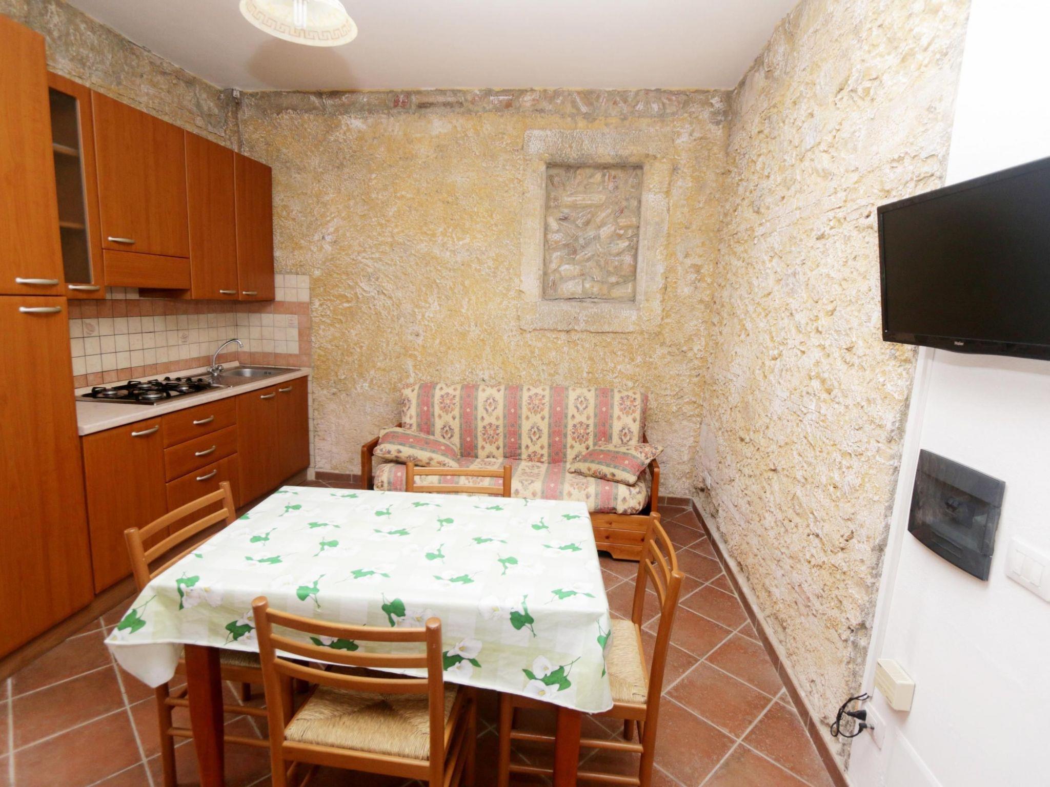 All'Interieur zu bieten, die'appartamento dispone di una cucina soggiorno dotata di divano letto, ideale per condividere momenti di convivialità, accompagnata da una camera da letto matrimoniale per il vostro riposo ottimale e un bagno pratico con doccia. Per garantirvi un soggiorno confortevole, sono inclusi servizi come aria condizionata per affrontare i giorni più caldi, una TV a schermo piatto per i vostri momenti di relax e una connessione internet Wi-Fi per mantenervi sempre connessi.