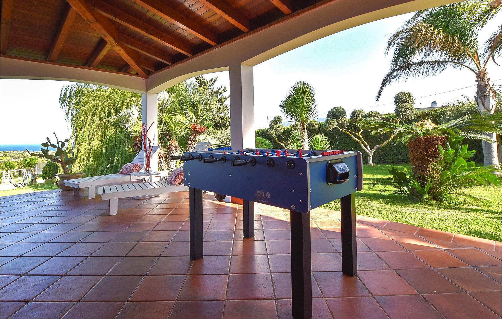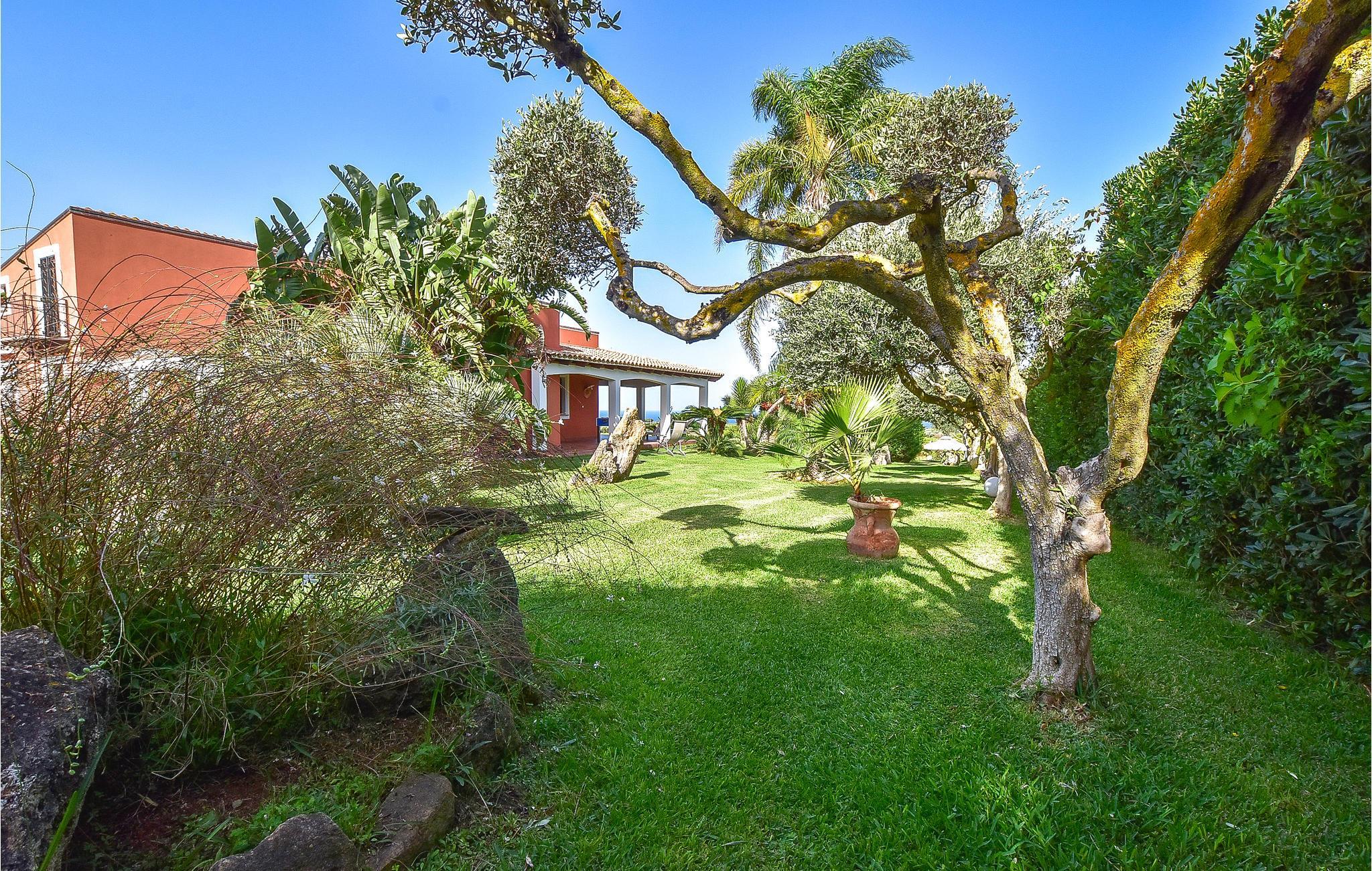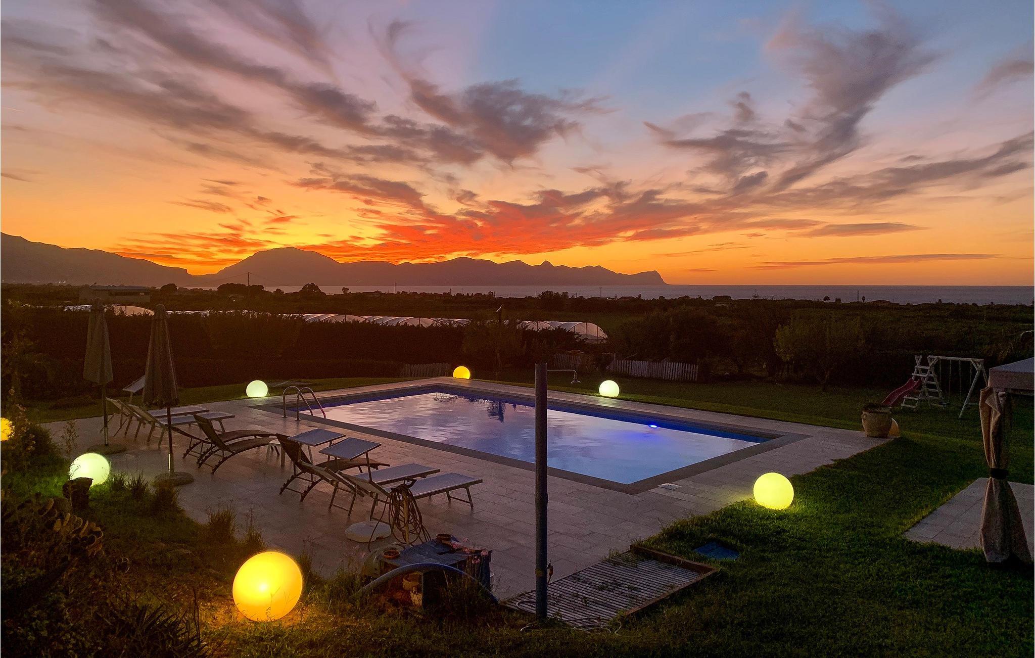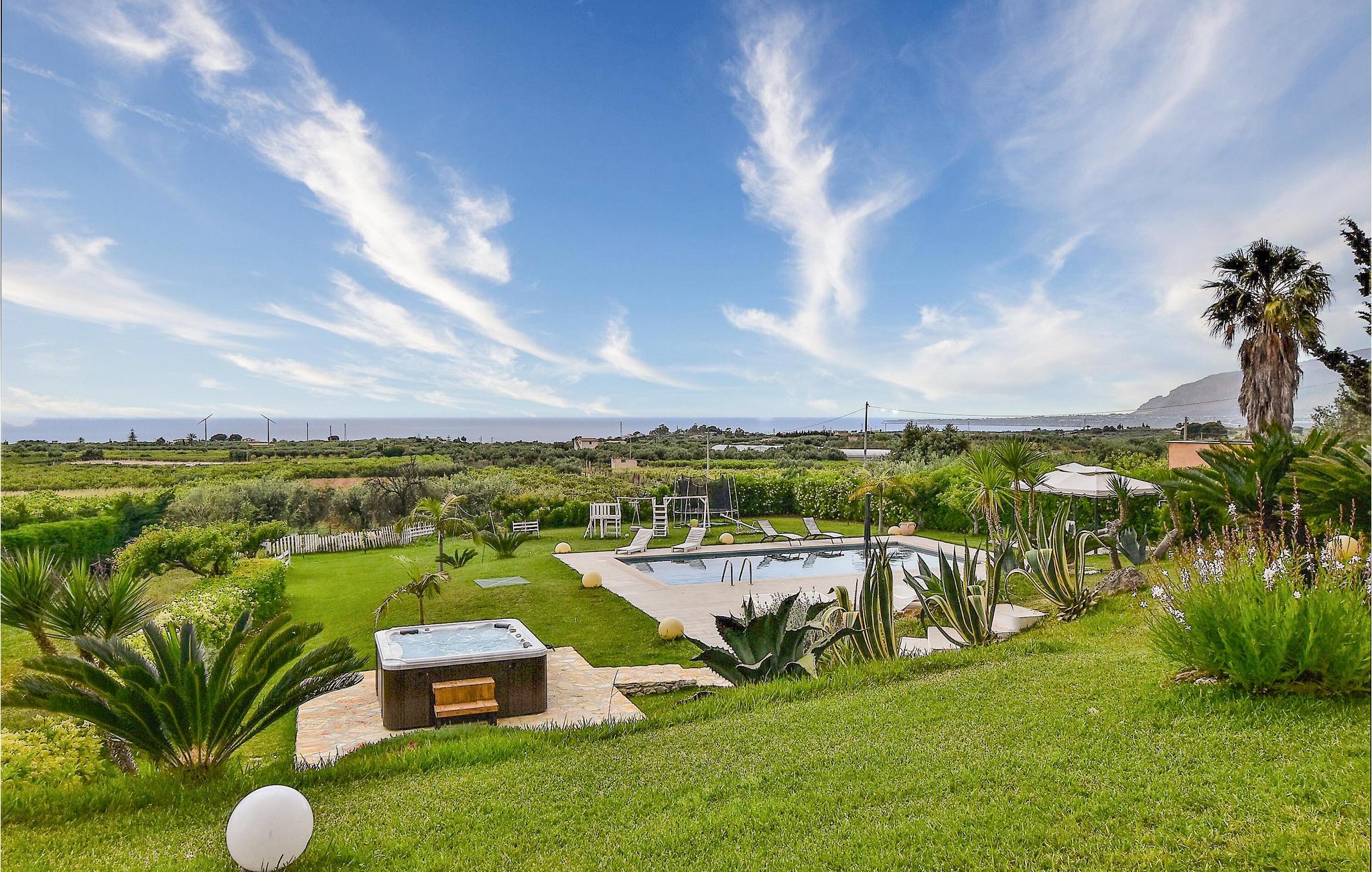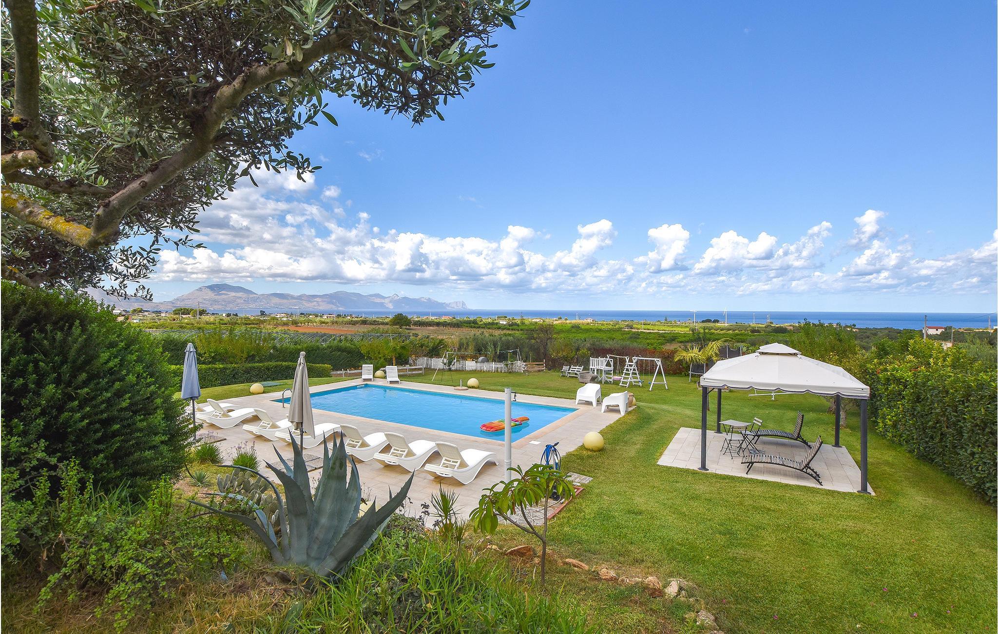Etwa 2,5 km von Trappeto entfernt, in der herrlichen Landschaft des Golfs von Castellammare, erwartet Sie dieses große Ferienhaus mit Pool und gepflegter Atmosphäre. Das Haus ist von einem wunderschönen Garten (4000 m²) umgeben mit Rasenfläche, Teichen, Zierpflanzen, Spielen für Kinder und dem Panorama-Pool, ideal zur Abkühlung an den sonnigen sizilianischen Tagen. Umgeben von Weinbergen und ländlicher Umgebung liegt die Unterkunft auf einem kleinen Hügel, von dem aus Sie wunderschöne Sonnenuntergänge und das wunderbare Panorama bewundern können, das von den Klippen der Cala Rossa bis nach San Vito lo Capo reicht. Zu Ihrer Verfügung stehen eine schöne und große überdachte Terrasse, auf der Sie bei herrlicher Aussicht speisen können, ein großer Pavillon, Sonnenliegen und Liegestühle zur Entspannung. Aufgrund seiner privilegierten Lage, fast gleich weit entfernt von Palermo und Trapani, erreichen Sie vom Haus aus bequem die schönsten Orte im Westen Siziliens: Palermo, Monreale, Segesta, Selinunte, die Ägadischen Inseln und viele andere. Im Erdgeschoss des Hauses befindet sich ein großer Wohnbereich mit Kochinsel.