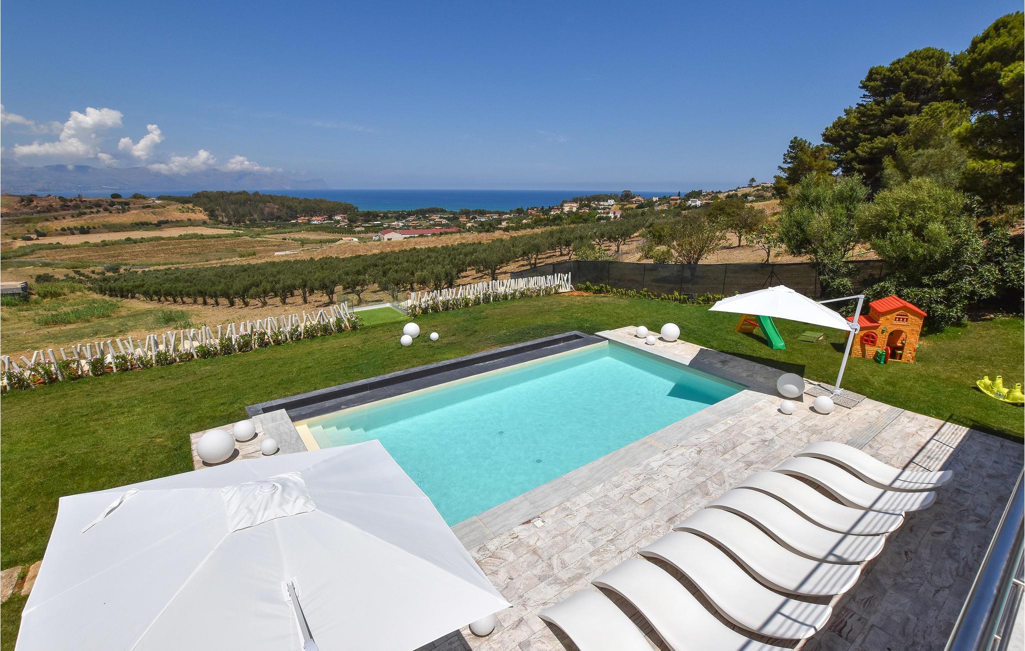 Wunderschönes, unabhängiges Ferienhaus mit großem privaten Infinity-Pool. Nur 1000 m vom Sandstrand zwischen Balestrate und Alcamo entfernt, auf einem kleinen Hügel, von dem aus Sie einen herrlichen Blick auf das Meer und die umliegenden Hügel genießen können. Neben dem Swimmingpool stehen den Gästen ein Whirlpool im Freien sowie große Terrassen mit Sofas und Tischen zum gemeinsamen Essen zur Verfügung. Der große, ausgestattete Garten mit Rasen bietet auch eine Außenküche und einen Grill.
