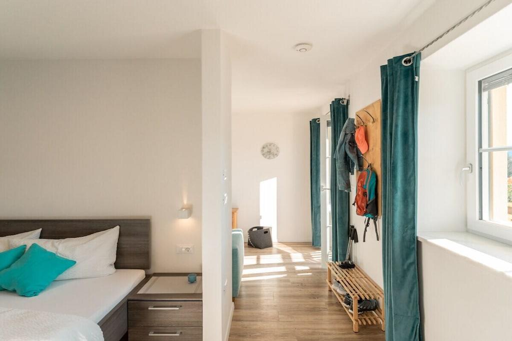 Die Liebe steckt im kleinsten Detail. Apartment s‘Nestl 1. Obergeschoss – ideal für 2 Personen Klein, aber oho ist unser Apartment s’Nestl mit seinen 40 m². Und es macht seinem Namen alle Ehre. Hier wohnt ihr wie in einem Nest, wo es ganz kuschelig und gemütlich ist. Und doch fehlt es euch in dieser Ferienwohnung nichts. Sogar einen Balkon habt ihr, zum Draußensitzen und Ausblick-Genießen.