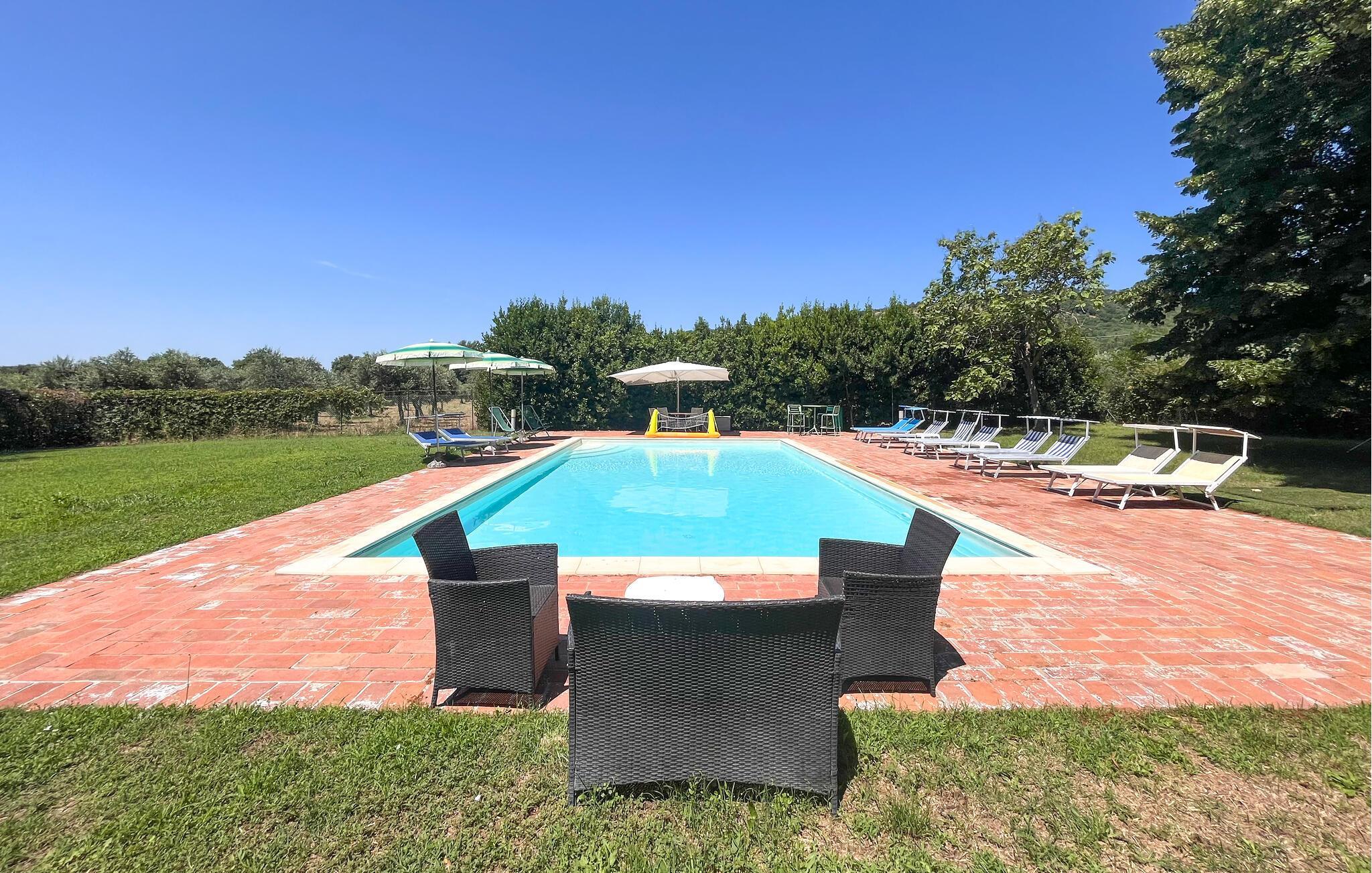 In dieser charmanten Wohnung aus dem 19. Jahrhundert, im ersten Stock eines Gebäudes mit weiteren Wohnungen, genießen Sie das Flair vergangener Zeiten kombiniert mit modernem Komfort. Entdecken Sie mit Ihrer Familie die unterschiedlichen Räume, die es Ihnen leicht machen zur Ruhe zu kommen und Ihrem täglichen Urlaubstreiben nachzugehen. Die helle, gemütliche Einrichtung und die großzügige Veranda bieten Ihnen einen perfekten Rückzugsort. Der Balkon lädt Sie zu entspannenden Stunden mit Blick auf den gepflegten Garten ein. Der Gemeinschaftspool und der Grillplatz im großen, eingezäunten Park sorgen für erfrischende Momente und gesellige Abende mit anderen Gästen.