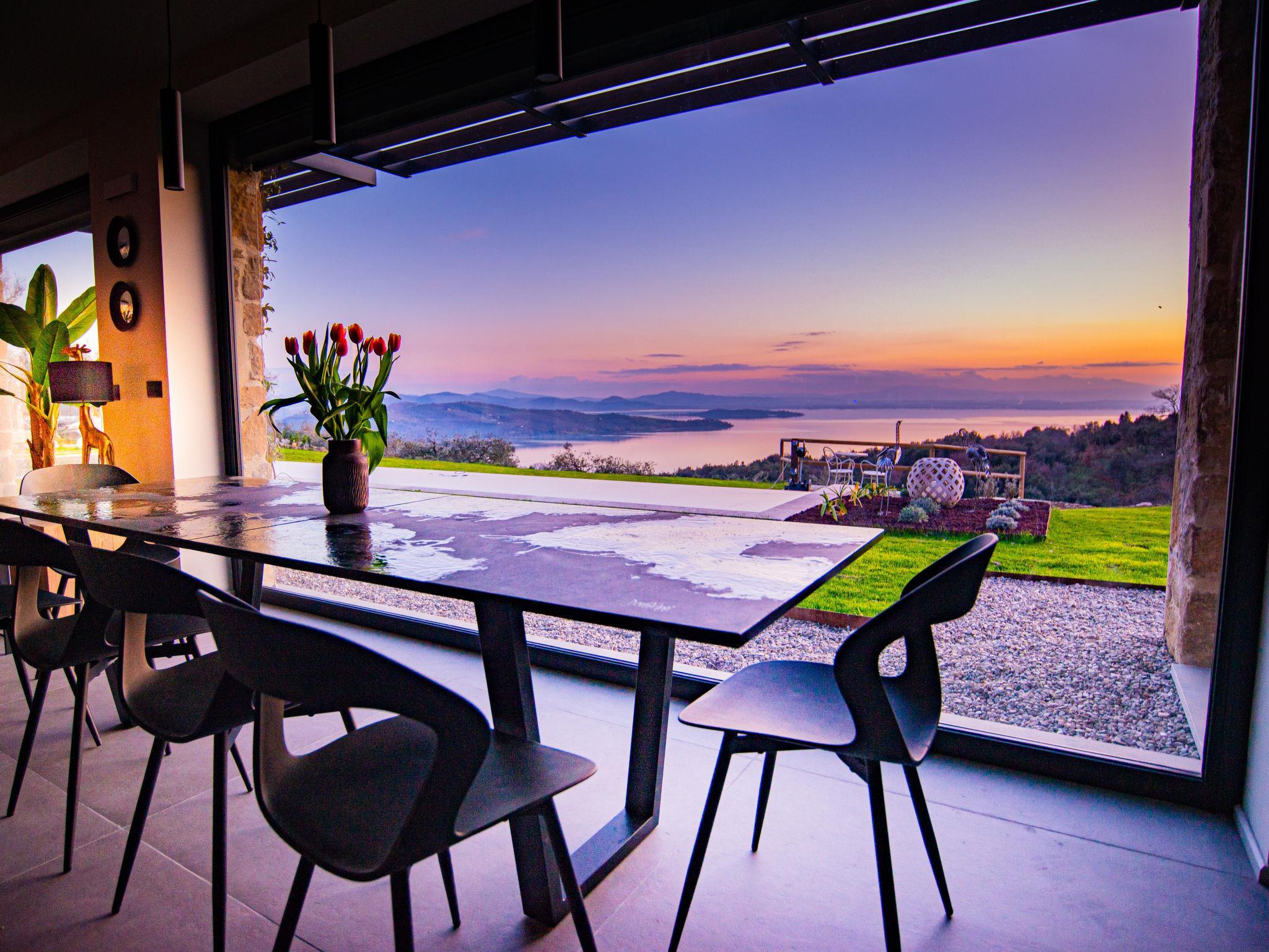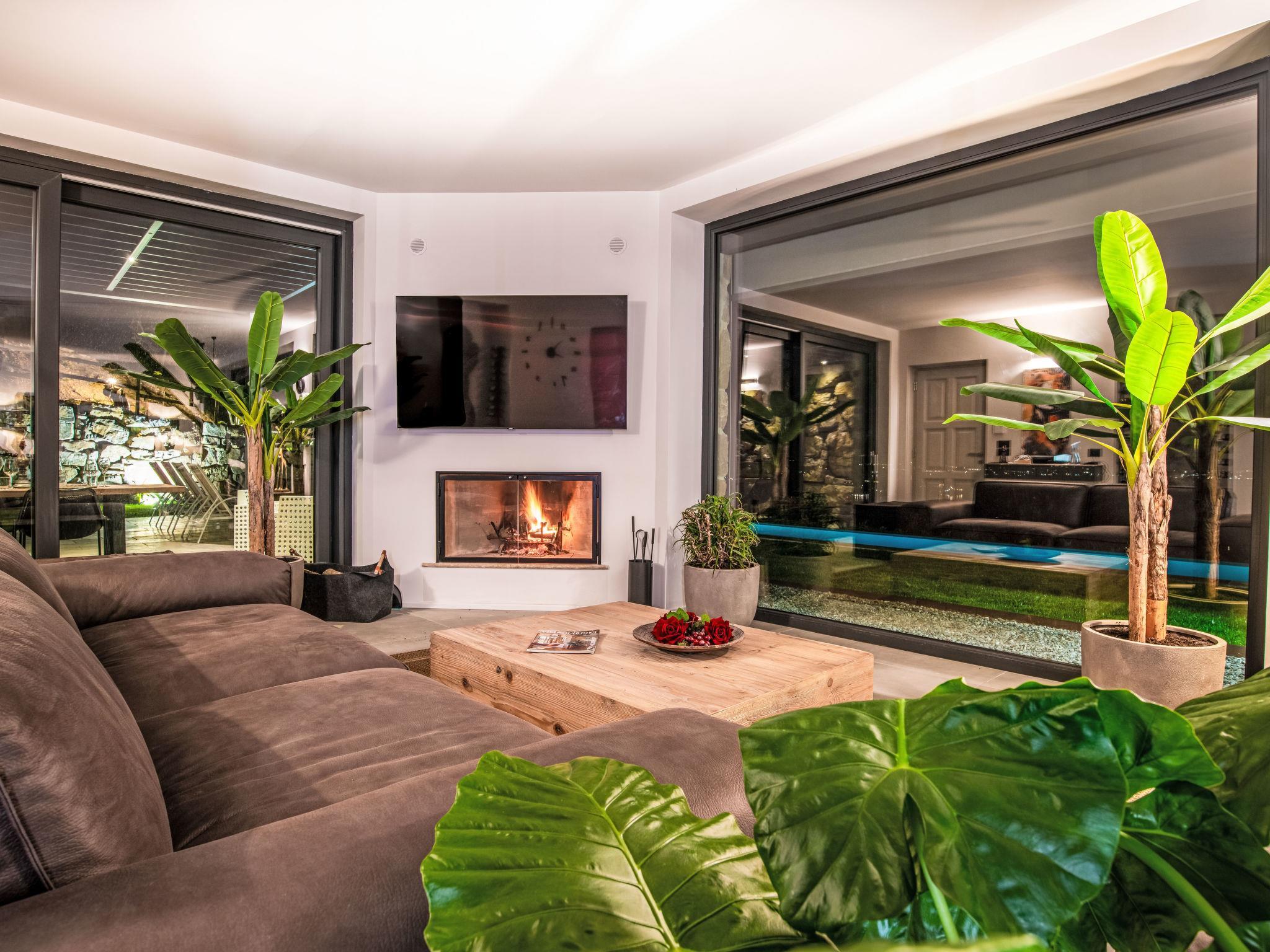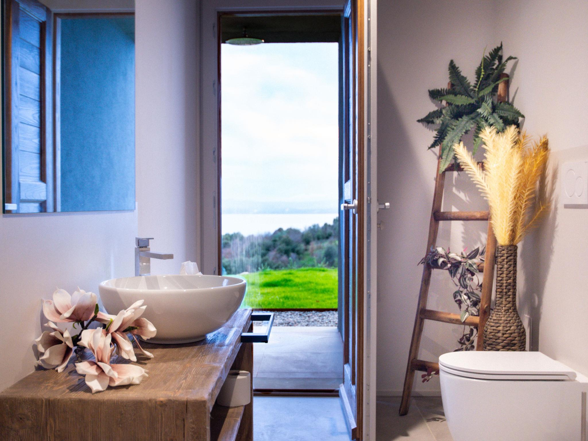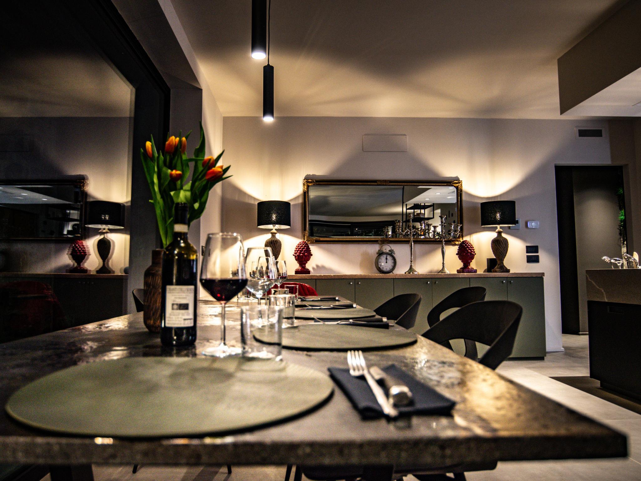 4-Zimmer-Villa 200 m2. Modern und luxuriös eingerichtet: offenes grosses Wohn-/Esszimmer mit Panoramafenster mit offenem Kamin, Küchenblock und TV (Flachbildschirm). Ausgang zum Garten, Pergola. 2 Doppelzimmer mit Panoramafenster, jedes Zimmer mit Dusche/Bidet/WC. Ausgang zum Garten, zum Schwimmbad. 1 grosses Doppelzimmer mit Panoramafenster mit Bad/Dusche/Bidet/WC. Ausgang zum Garten, zum Schwimmbad. Kochnische (Backofen, Geschirrspüler, 6 Induktionskochplatten, Toaster, Wasserkocher, Mikrowelle, Grill, elektrische Kaffeemaschine). Dusche/Bidet/WC. Solarheizung, Klimaanlage. Solarstrom. Sehr schöne Panoramasicht auf den See und die Landschaft. Zur Verfügung: Waschmaschine, Fliegengitter, Haartrockner. Internet (Wireless LAN). Für Kleinkinder nicht geeignet nicht geeignet für Kinder unter 12 Jahren. IT054038C23B033589