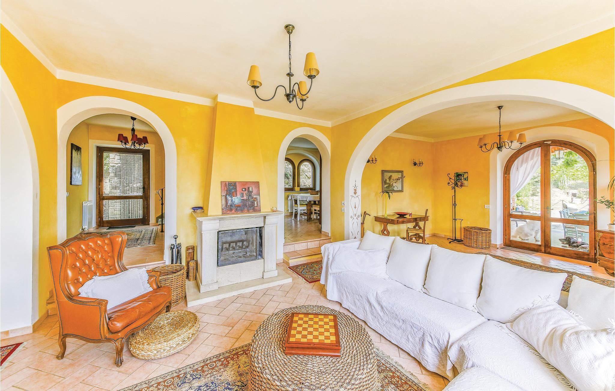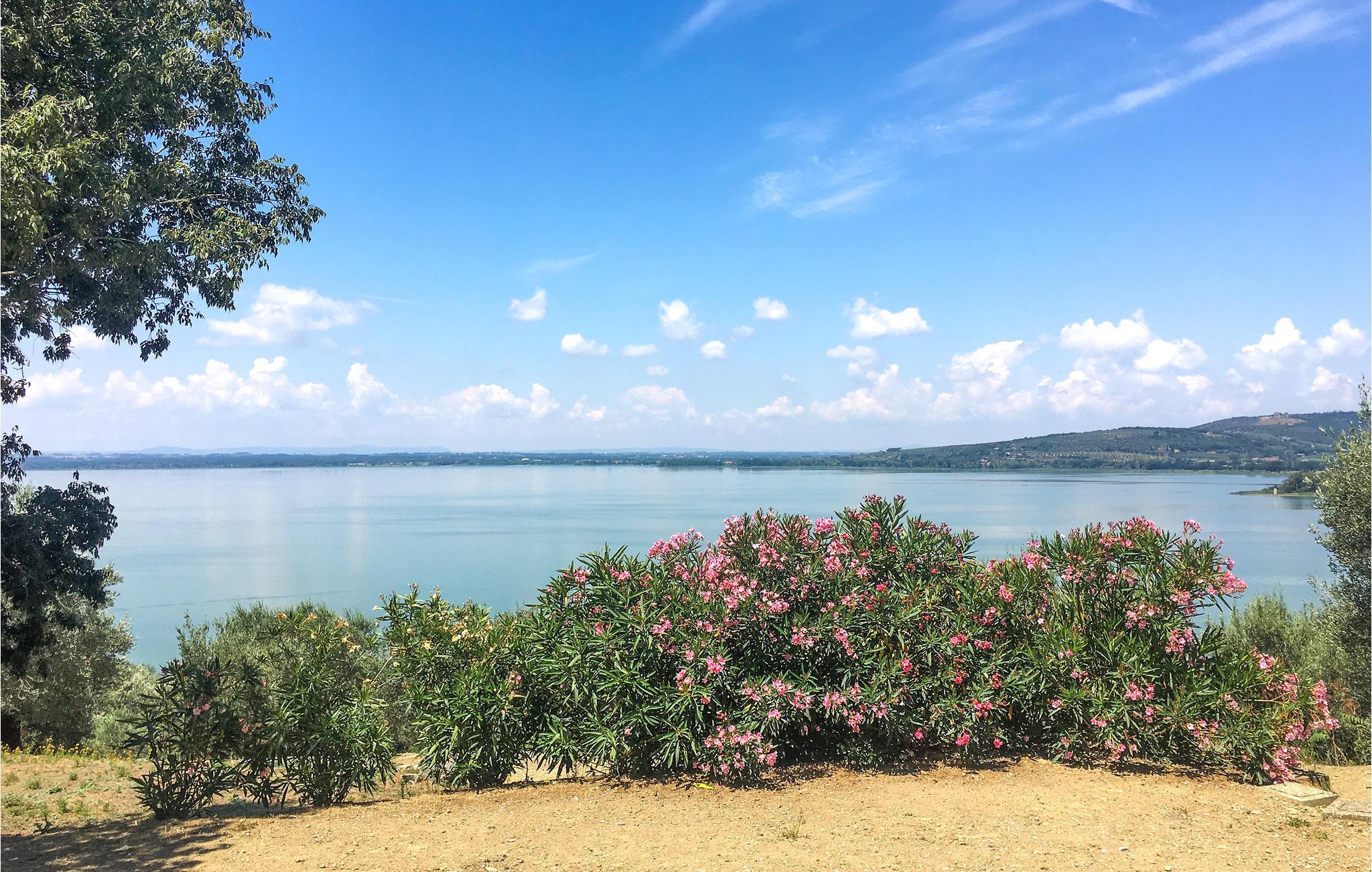 Dieses gepflegte und geschmackvoll eingerichtete Ferienhaus befindet sich in leichter Hügellage auf dem Land in einem ruhigen Seitental ca. 12 km von Passignano sul Lago entfernt. Vom Erdgeschoss mit großzügigem Wohnbereich und offenem Kamin gelangen Sie auf die überdachte Terrasse, von wo aus Sie einen wundervollen Blick über die Landschaft genießen. Da das Haus am Hang gebaut wurde, erreicht man den Poolbereich direkt von den Schlafräumen im 1. Stock über einen hinteren Ausgang. Auf dem weitläufigen Gartengrundstück finden Sie zudem eine Grillecke und ein Wäldchen. Besichtigen Sie das hübsche Städtchen Passignano sul Lago am Trasimenischen See und erkunden Sie dabei auch die kleine Insel Maggiore, die man mit einer Personenfähre erreicht und wo Sie im Restaurant den frischen Fisch des Sees kosten können. In der Nähe erreichen Sie bequem sehenswerte Städte der südlichen Toskana, wie z.B. Cortona (ca. 30 km), Montepulciano (ca. 50 km), Pienza (ca. 65 km) sowie die antike, umbrische Hauptstadt Perugia (ca. 35 km) bzw. die kleine Stadt Assisi (ca. 60 km, Geburtsort des Heiligen Franz von Assisi). Auf Anfrage bei Buchung und Zahlung vor Ort: Koch- und Reinigungsservice. Die Zufahrt zum Haus ist unasphaltiert.
