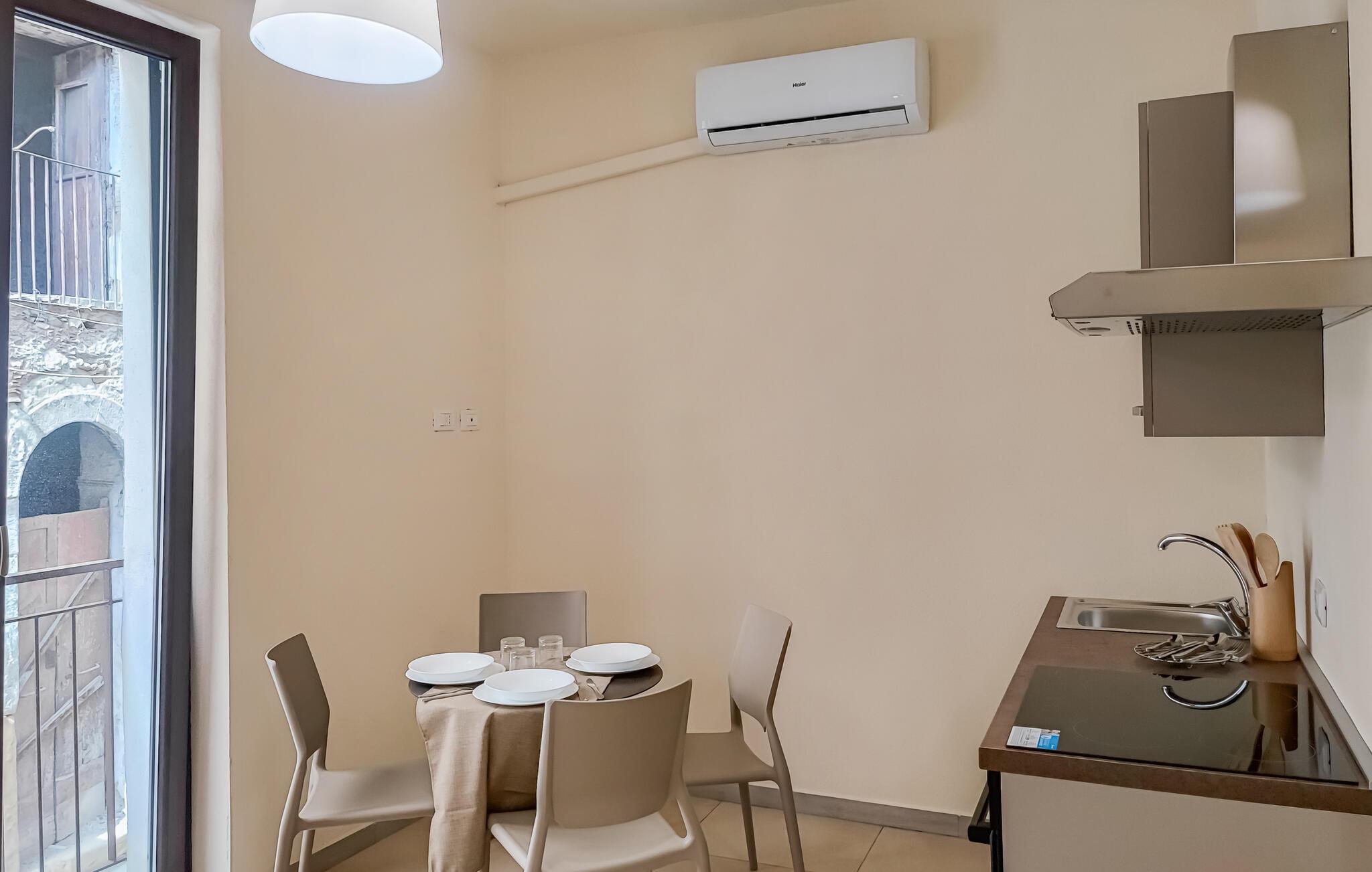 Reisen Sie nach Patti und beziehen diese schöne Ferienwohnung, eines der Le Muse Apartments, im modernen und schlichten Stil. Als Paar oder kleine Familie können Sie es sich hier entspannen und die Annehmlichkeiten der schönen Einrichtung und Ausstattung genießen und nutzen. Freuen Sie sich beim Frühstück am Esstisch über das hereinströmende Tageslicht und machen Pläne für Ihre nächsten Ausflüge. Falls Sie mit Freunden oder weiteren Familien verreisen, können Sie, je nach Verfügbarkeit, weitere Ferienwohnung im Haus buchen.