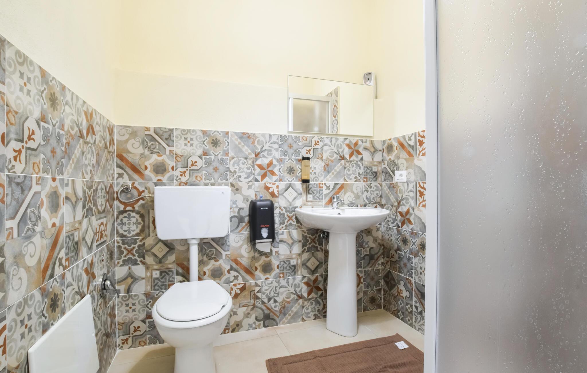 - WC mit warmem und kaltem Wasser, Dusche