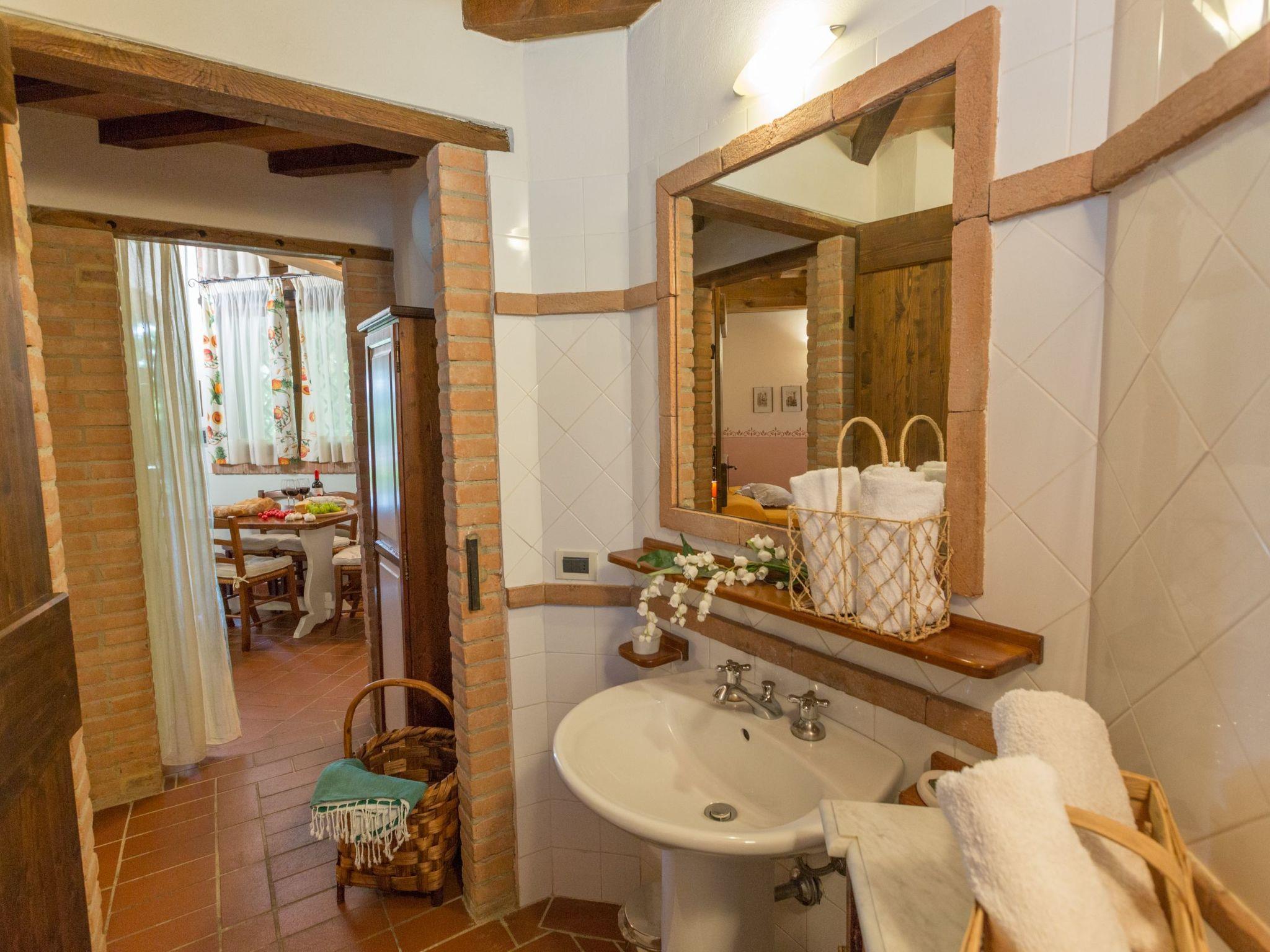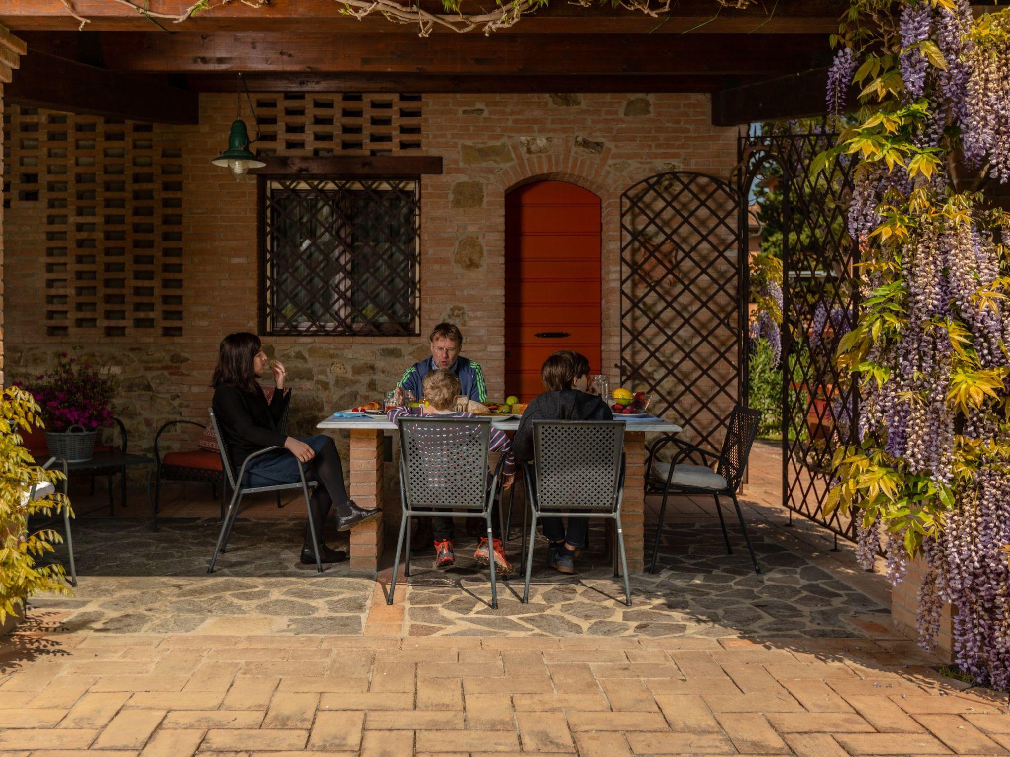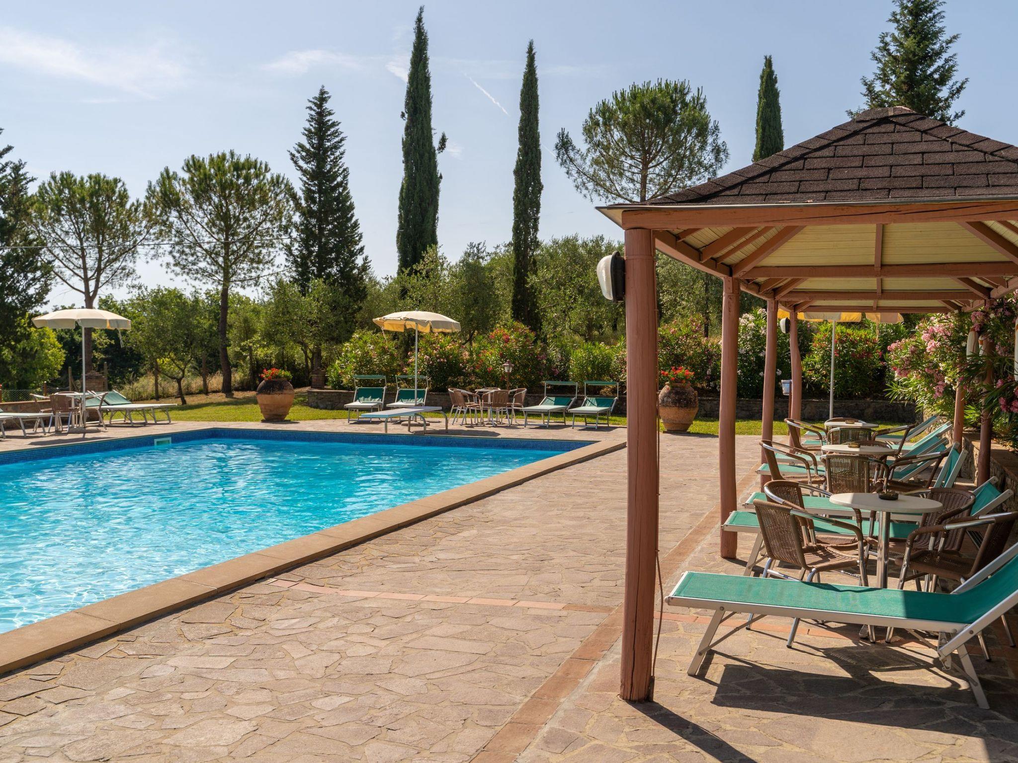 Das Ferienhaus verfügt über 8 komfortable, im toskanischen Stil eingerichtete Wohnungen, alle mit eigenen Terrassen, Terrakottaböden und Holzbalkendecken. Das Haus ist umgeben von einem 7000 Quadratmeter großen Garten mit Swimmingpool (20x8 m, geöffnet von Mai bis Oktober, Tiefe: 1,4 bis 3,0 Meter) mit Hydromassage-Ecke, Tischtennisplatte, Kinderspielplatz, Außengrill und Boccia-Platz.