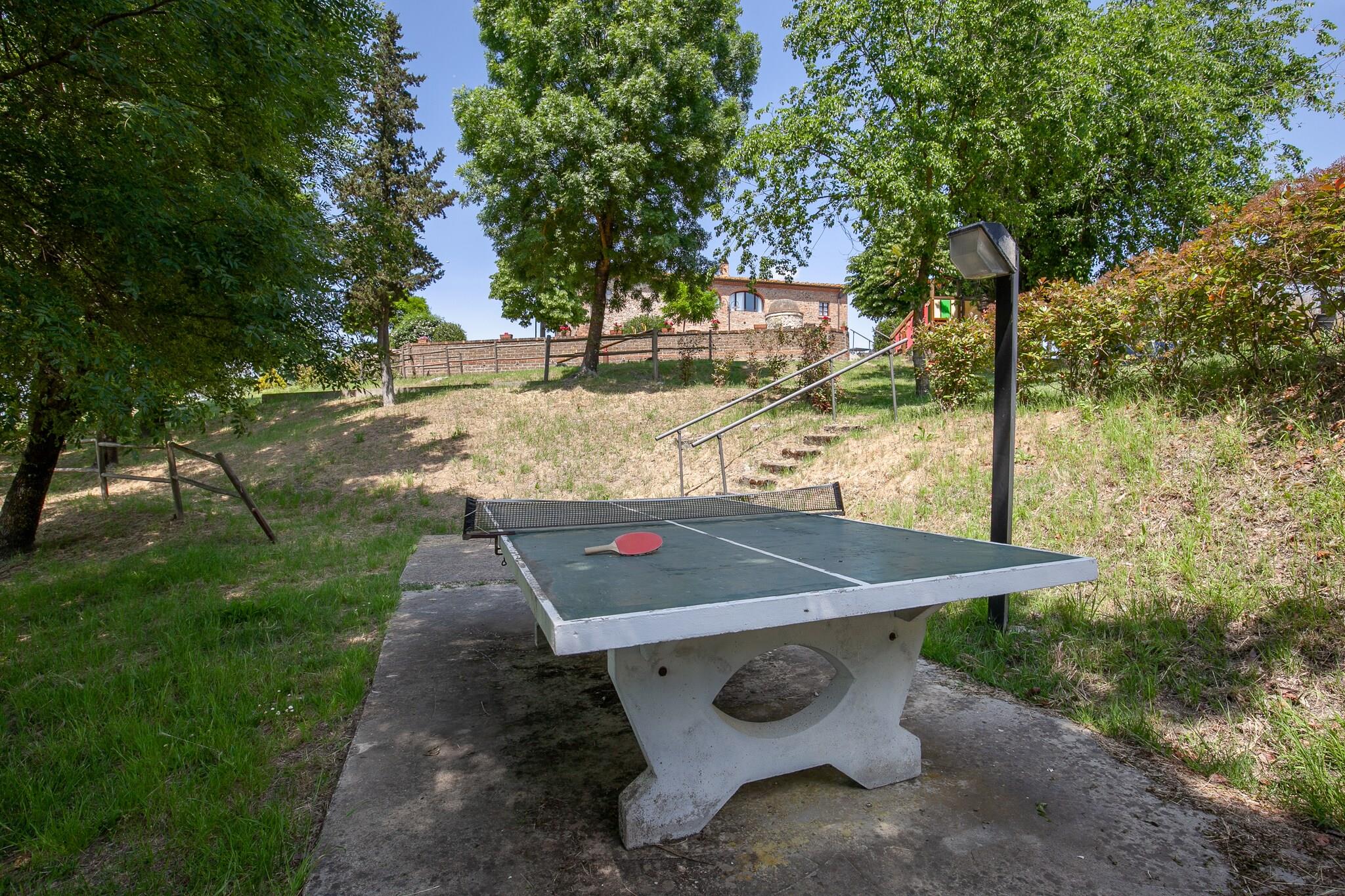 Toskanische Ruhe mit Aussicht Diese charmante Wohnung, eingebettet in die sanften Hügel der Toskana, ist ein ruhiger Rückzugsort, umgeben von üppigen Wiesen und Olivenhainen. Die luftigen Innenräume öffnen sich zu einem sonnendurchfluteten Garten, und der einladende Gemeinschaftspool bietet den perfekten Rückzugsort an warmen Nachmittagen. Mit einem Gartengrill und viel Platz zum Entspannen ist sie eine wunderbare Wahl für Familien oder Paare, die rustikale Ruhe suchen. Ein Kinderbett ist auf Anfrage erhältlich, und die Kleinen werden die offenen Grünflächen und die frische Landluft genießen. Entdecken Sie die Essenz der Toskana Nur eine kurze Autofahrt entfernt liegt das Bergdorf Peccioli mit seinen gepflasterten Straßen, Kunsthandwerksläden und Panoramablicken. Für diejenigen, die die Gegend weiter erkunden möchten, bieten die berühmten mittelalterlichen Städte Volterra und San Gimignano Geschichte und beeindruckende Architektur, während Pisa, Lucca und Florenz für Tagesausflüge erreichbar sind. Fahrräder stehen zur Verfügung, um malerische Wege durch Weinberge und vorbei an Zypressen gesäumten Straßen zu erkunden. Ob zu Fuß oder auf dem Fahrrad, die Landschaften sind Postkartenhaft schön. Geschmäcker der Region Die lokale kulinarische Szene ist einfach köstlich. Verpassen Sie nicht das authentische toskanische Abendessen jeden Montag oder die Pizza-Abende am Donnerstag mit Holzofen-Kreationen. Das nahegelegene Peccioli bietet eine Auswahl an Trattorien, die regionale Spezialitäten servieren – wie Wildschweinragout und handgemachte Pici-Nudeln. Weinliebhaber können bei Weinverkostungen vor Ort einen Einblick in die reiche Weinbautradition der Region gewinnen und so jede Mahlzeit zu einer Hommage an den zeitlosen Charme der Toskana machen.
