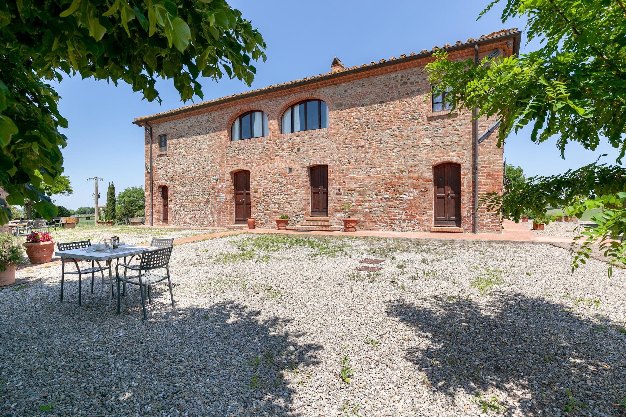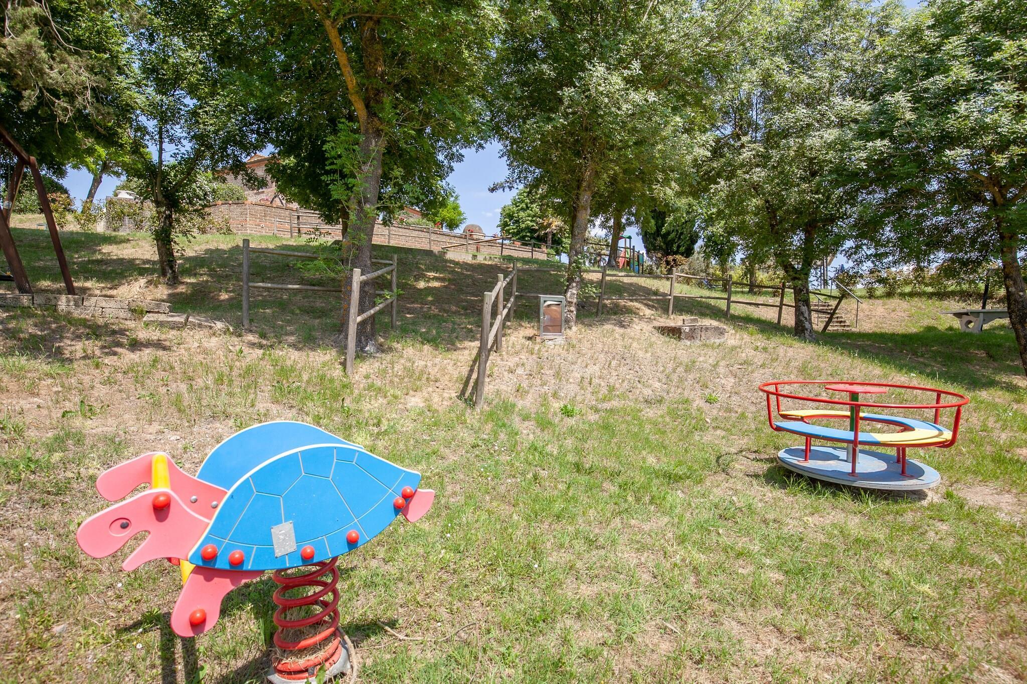 Diese geräumige Villa auf dem Land befindet sich in der Strada Comunale di Montelopio, etwas außerhalb von Fabbrica bei Peccioli. Das Erdgeschoss verfügt über ein gemütliches Wohnzimmer mit Doppelschlafcouch, Fernseher, Esstisch und offener Küche mit Herd, Backofen, Kaffeemaschine und Kühl-Gefrierkombination. Es gibt ein gemütliches Schlafzimmer mit Doppelbett und Kinderbett, ein modernes Badezimmer mit Dusche und Bidet sowie Klimaanlage. Ein separater Waschraum ist mit Waschmaschine, Bügelbrett und Bügeleisen ausgestattet. Im Außenbereich erwarten Sie eine Terrasse, ein privater Garten mit Sonnenliegen, Gartenmöbeln, Grill, Sonnenschirm und Parkplatz. Ein gemeinschaftlicher Pool (12 × 6 m) ist von Mai bis September geöffnet. Zur Ausstattung gehören ein Bouleplatz, Tischtennisplatten, Spielgeräte, eine Schaukel, ein Fußballtor, Fahrräder und ein optionales Kinderbett – ideal für Familienspaß. Die Villa ist für Kinder und Erwachsene konzipiert und bietet gemeinschaftliches Leben und private Rückzugsorte. Die offenen Wohnbereiche eignen sich perfekt für Familienfeiern, während die Schlafzimmer und der Garten ruhige Bereiche zum Entspannen bieten. Mit seinen zahlreichen Außenanlagen ist es ein herrlicher Ort für Sommertage und -abende. Nur 100 m von einem Waldweg und 2,5 km von den Restaurants von Peccioli entfernt, bietet dieses Haus einfachen Zugang zur Natur und zu Restaurants. Nicht weit entfernt können Sie die Pieve di San Verano besuchen, eine beeindruckende romanische Pfarrkirche aus dem 12. Jahrhundert mit einer fünfbogigen Fassade und bedeutenden Kunstwerken.