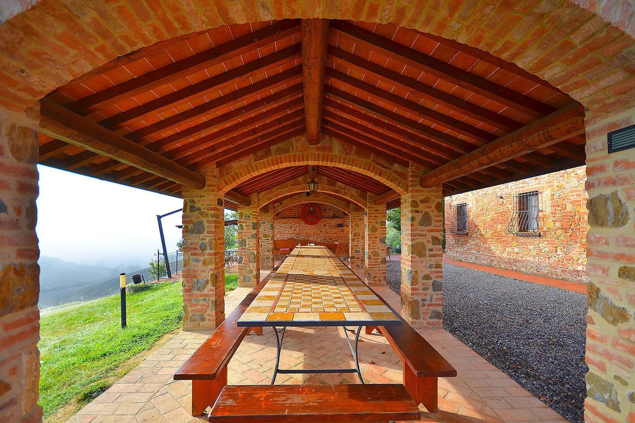 Diese einladende Villa in der Strada Comunale di Montelopio bietet einen komfortablen und geräumigen Aufenthalt in der toskanischen Landschaft. Das Erdgeschoss verfügt über ein sonniges Wohnzimmer, eine offene Küche mit Herd und Backofen, ein Doppelzimmer und ein modernes Badezimmer. Ein Waschraum mit gemeinschaftlich genutzten Waschmaschinen, Bügelmöglichkeiten und Zentralheizung sorgen für praktischen Komfort. Im Außenbereich erwarten Sie eine schattige Terrasse, ein privater Garten mit Gartenmöbeln und Grill sowie Zugang zu einem gemeinschaftlich genutzten 12 x 6 m großen Pool, der von Mai bis September geöffnet ist. Die Villa bietet Platz für bis zu 10 Gäste und erlaubt die Unterbringung von Haustieren und ist somit ideal für Familien. Der offene Wohnbereich fördert das gemeinschaftliche Wohnen, während private Bereiche wie das Schlafzimmer und der Waschraum für Komfort sorgen. Garten und Terrasse laden zu entspannten Nachmittagen ein. Zahlreiche Outdoor-Aktivitäten sind möglich, darunter Fahrräder für malerische Touren in der Nähe. Der Pool sorgt für Erfrischung an warmen toskanischen Tagen, und die Zentralheizung macht die Villa auch für kühlere Abende geeignet. Nur 100 m von ruhigen Waldwegen und 3 km vom Zentrum von Peccioli entfernt, verbindet die Villa Natur mit Komfort. Peccioli ist bekannt für sein mittelalterliches Zentrum, die charmanten engen Gassen und die historische Kirche San Verano mit ihrem markanten Glockenturm.