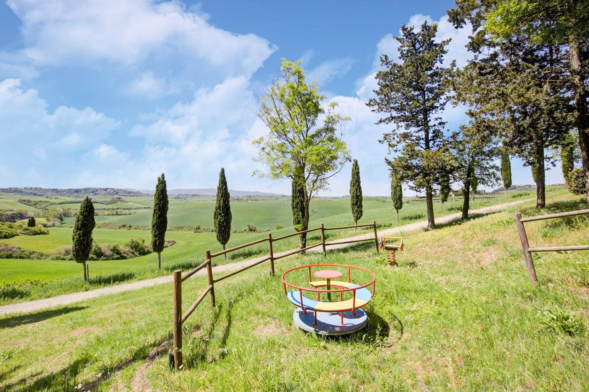 Ruhiges toskanisches Wohnen in Peccioli Eingebettet in die sanften Hügel der Toskana bietet dieses charmante Apartment einen ruhigen Rückzugsort auf dem Land im Herzen von Peccioli. Das Haus liegt auf einem historischen Anwesen mit herrlicher Aussicht und verbindet rustikalen Stil mit praktischem Komfort. Gäste können den Gemeinschaftspool, den üppigen privaten Garten zum Sonnenbaden oder gemütlichen Brunch sowie die Außenbereiche zum Entspannen genießen. Vom Grillabend bis zum Entspannen unter einem Sonnenschirm mit regionalem Wein – hier erleben Sie authentische italienische Momente. Kinder werden die Spielgeräte und den Fußballplatz lieben, während Erwachsene vor Ort Weine verkosten oder die wöchentlichen toskanischen Abendessen und Pizza genießen können. Ein Tor zu ikonischen toskanischen Städten Die Lage ist ideal, um die schönsten Orte der Toskana zu erkunden. Nur 30 km von Volterra entfernt und in der Nähe von San Gimignano und Castelfalfi ist das Apartment ein idealer Ausgangspunkt für kulturelle Tagesausflüge. Der nahegelegene Lago del Gattero ist nur 100 Meter entfernt und ideal für gemütliche Spaziergänge oder zum Angeln am Seeufer. Malerische Radwege und Naturpfade schlängeln sich durch die umliegende Landschaft und machen sie zu einem Paradies für Aktivurlauber und Naturliebhaber. Lokale Aromen und kulinarische Entdeckungen Hier erwacht die toskanische Gastronomie zum Leben. Genießen Sie eine Weinprobe an der Rezeption des Anwesens oder kaufen Sie frische Produkte vom Bauernhof, die Sie in Ihrem Apartment genießen können. Zum Essen gehen bieten die umliegenden Dörfer wie Fabbrica und Peccioli (8 km entfernt) charmante Trattorien und lokale Restaurants mit traditioneller Küche. Besuchen Sie unbedingt La Vecchia Carraia für authentische Pasta oder das Ristorante Il Grano E L’Uva für regionale Weine und saisonale Gerichte.
