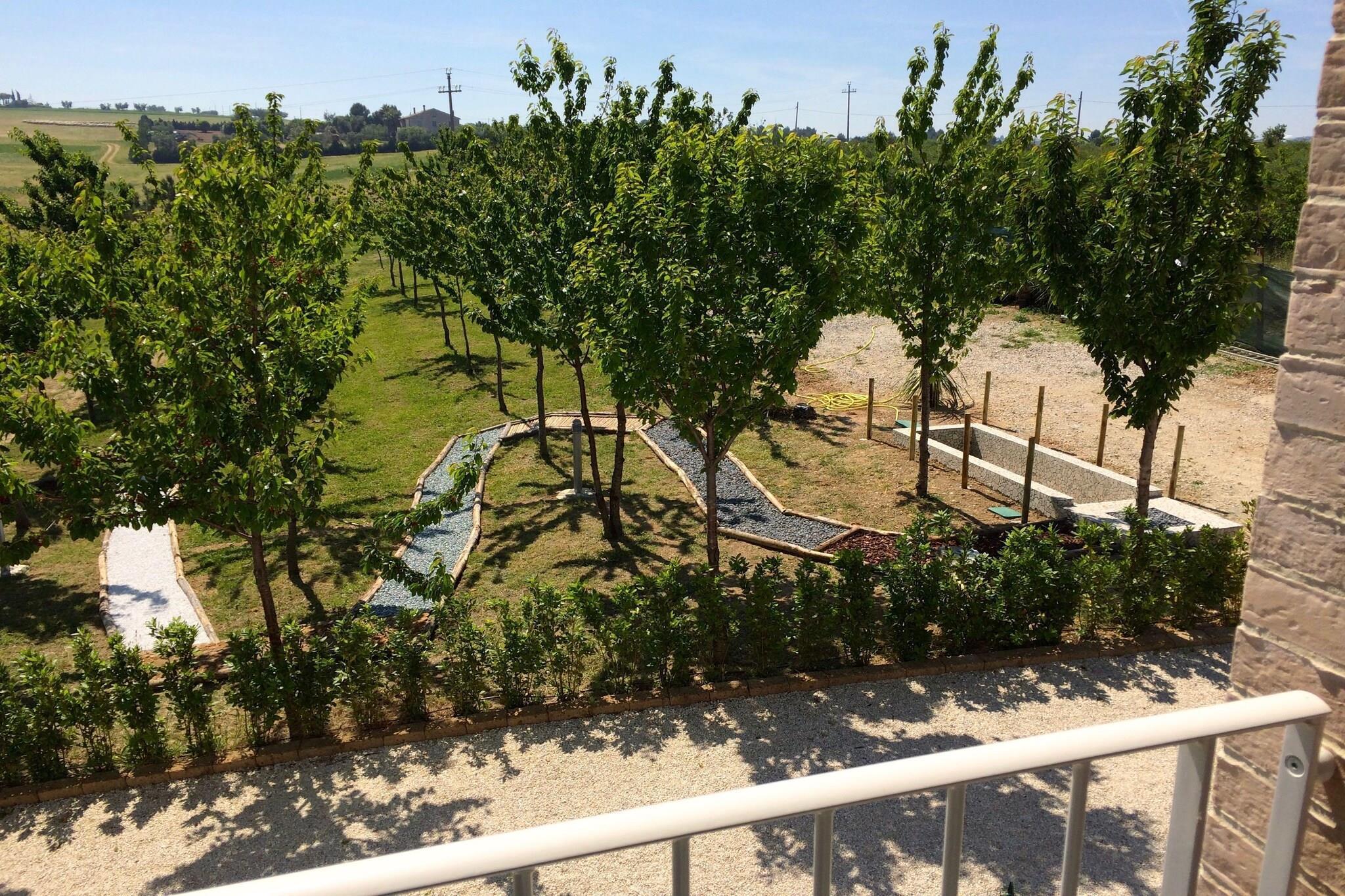 Die Ferienanlage liegt auf einem üppig bewachsenen Hügel, im Hinterland von Pedaso, einer kleinen malerischen Stadt an der Adriaküste und bietet Ihnen eine atemberaubende Aussicht über das Meer. Wie ein großer Fächer eröffnet sich Ihnen die umliegende Natur mit seinen 2.000 Fruchtbäumen, unter anderem 10 verschiedene Kirschbaumsorten, Olivenhainen, Wiesen und verschiedenen Sportwegen. In unmittelbarer Nähe befinden sich die berühmten Kunststädte wie Loreto, Recanati und Ascoli Piceno, die die Marken so unverkennbar machen. Die Anlage wurde nach den neuesten Richtlinien für umweltfreundliche Baumaterialien errichtet. Die Photovoltaik Anlage liefert den gesamten Energiebedarf für die Gebäude und den 8 ha großen Park. Die Heiz- und Klimaanlage wird durch eine energieeffiziente Wärmepumpe gewährleistet und der Pool ist nicht mit Chlor versehen. Das bietet Ihre Ferienanlage: 3 Gebäude, 10 Wohneinheiten, Rezeption, WLAN im Poolbereich, Fahrstuhl, Waschmaschine, Garten, Gemeinschaftsterrasse, Grillplatz, PKW-Stellplätze Entfernung 10 m, Aktivitäten: Gemeinschaftlicher Außenpool 100 qm (Geöffnet von Anfang Mai bis Ende Oktober), beheizbar. Kinderbecken, Whirlpool, Hydromassage, Außendusche, Liegen, Sonnenschirme. Für Kinder: Spielplatz, Klettergerüst, Rutsche, Schaukel. Extras inklusive: 1 Flasche Wein und Olivenül bei Ankunft zur Begrößung WLAN Verbrauchsabhängige Energiekosten, Bettwäsche, Handtücher, Endreinigung Mobilität : Einige Objekte sind geeignet für Personen mit eingeschränkter Mobilität, auf Anfrage